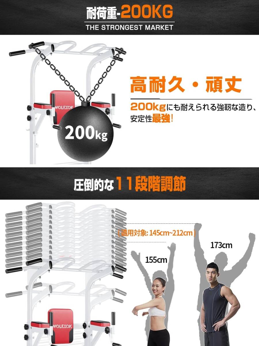 ホワイト色 懸垂マシン 【7in1多機能・改良バー・耐荷重200kg】 チンニングスタンド 高度11段調節可能 ぶら下がり