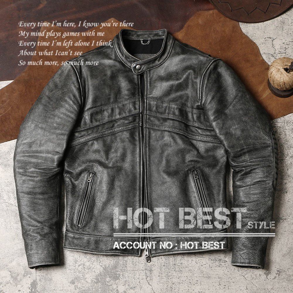 1.1mm 復刻30'sスタイル シングルライダース メンズ 革ジャン デザイナーズ レザージャケット ウォッシュ加工 ヴィンテージ 牛革 Y1482/XXL