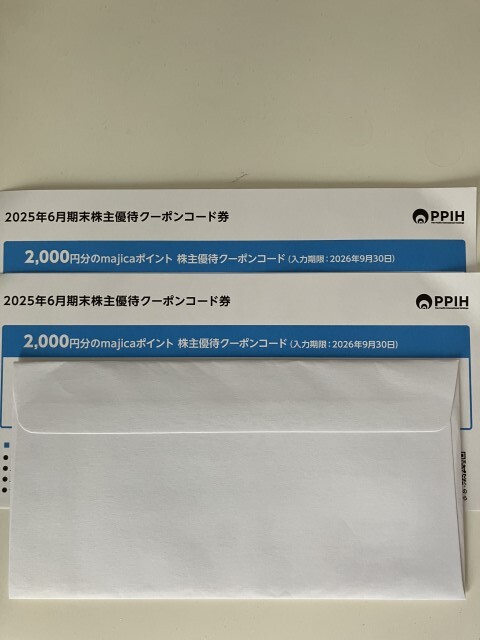 ☆パン・パシフィック・インターナショナルホールディングス株主優待のmajicaポイント 4,000円分(2,000円x2)の出品です。