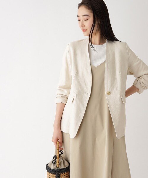 キーワード:ジャケット ノーカラージャケット レディース 無地