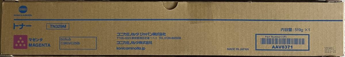 新品・未開封 コニカミノルタ 黄トナー TN329M 1本です。 外箱の傷みを含めてノークレームでお願いします。 その他、TN329K(黒) TN329Y(黄) TN329C(青)も出品してます。ご要望あれば併せて宜しくお願いします。
