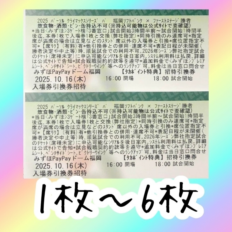 10月16日 ソフトバンクホークス クライマックス 入場券引換券 チケット