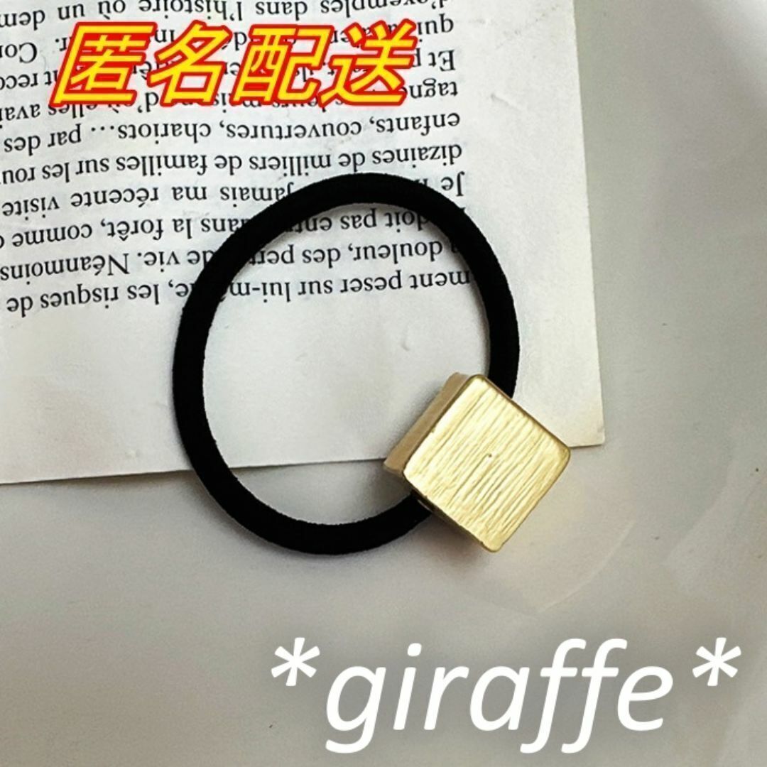 E494 匿名配送 ヘアゴム メタル スクエア ゴールド 立体 髪ゴム ヘアアクセサリー モチーフ