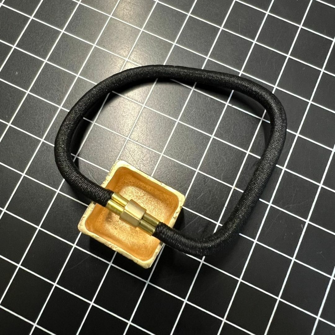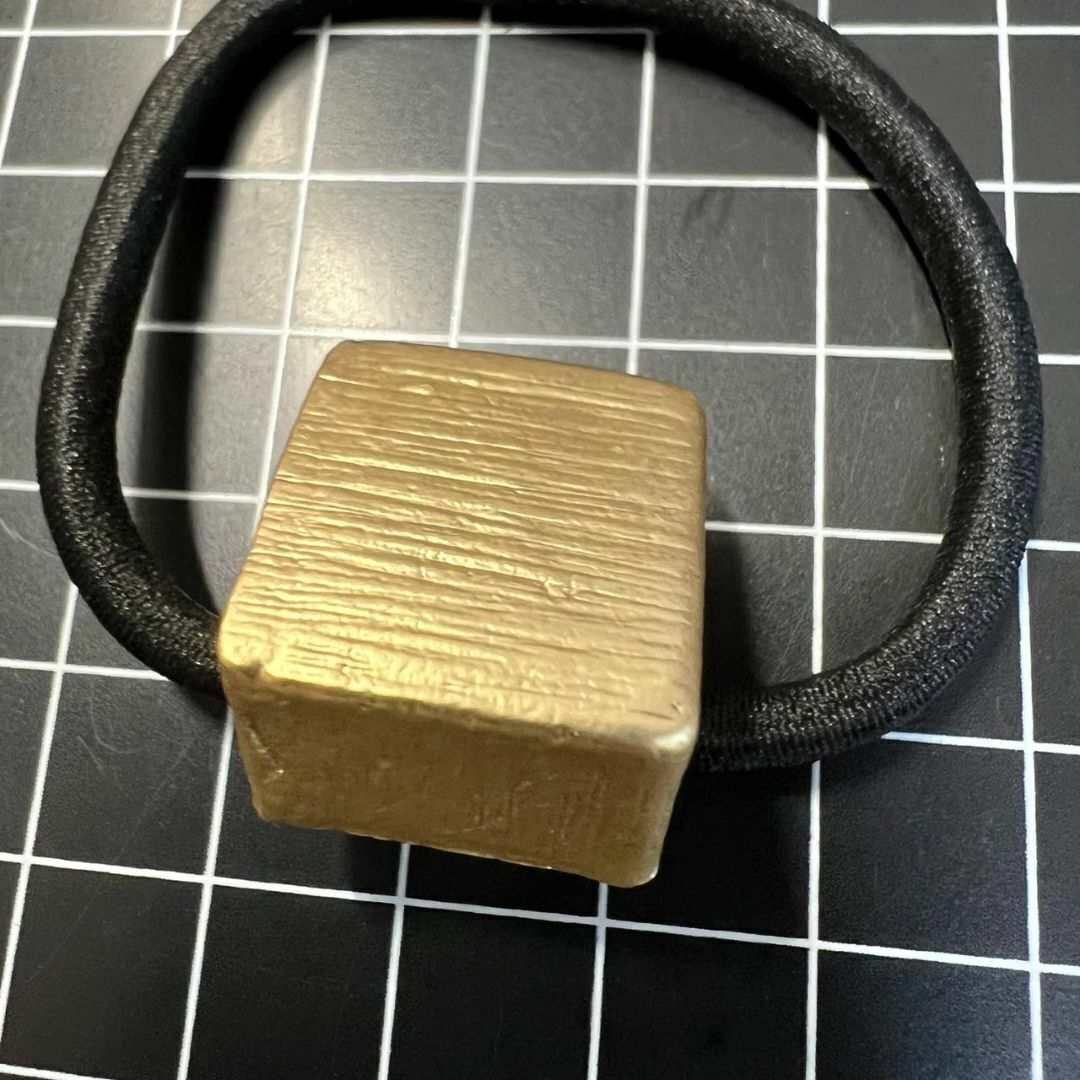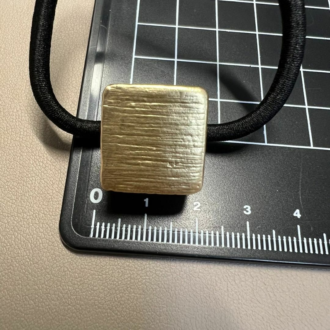 メタル調の立体スクエアモチーフがついたヘアゴムです。