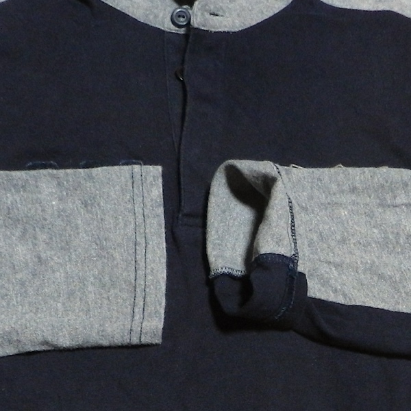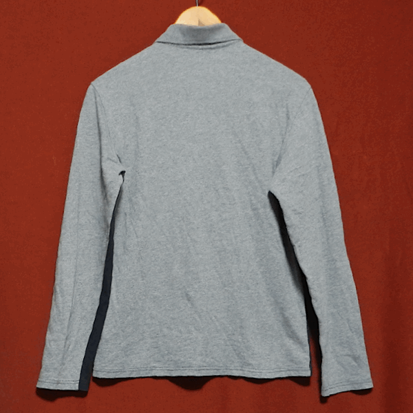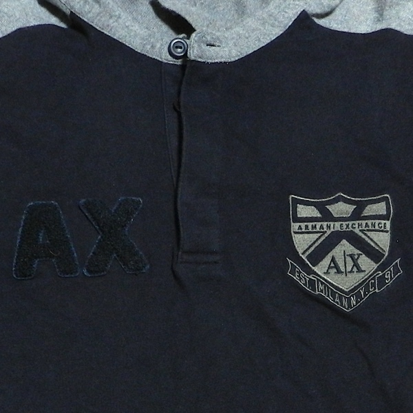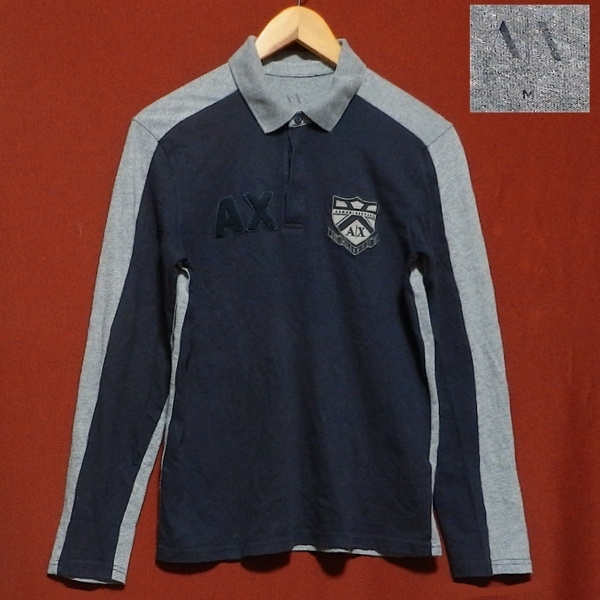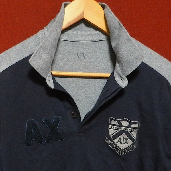 ARMANI EXCHANGE アルマーニ エクスチェンジ ロゴ パッチ ワッペン エンブレム 刺繍 ラガーシャツ 長袖 ポロシャツ カットソー 紺 グレー M