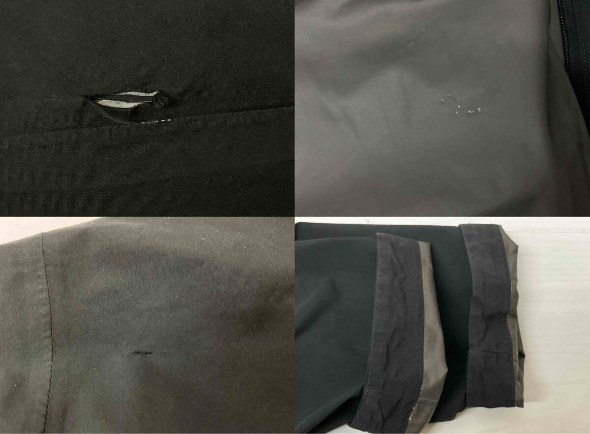 商品は画像のものが全てです 着丈:約71cm 袖丈:約67cm 肩幅:約50cm 身幅:約59.5cm 前方左ポケットの下側に破れ有り。 後方左肩辺りに破れ有り。 袖口に擦れ・汚れ有り。 裏地右側、フード内側に擦れ有り。 他に数箇所薄い汚れや細かい擦れ有り。 |