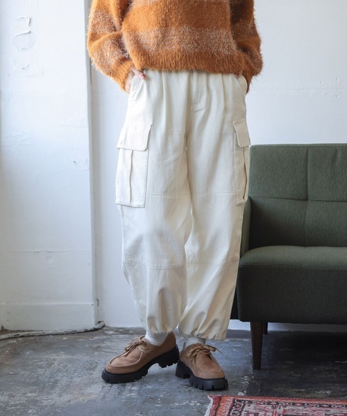 キーワード:カーゴパンツ レディース ハイウエスト フルレングス ワイドパンツ 無地