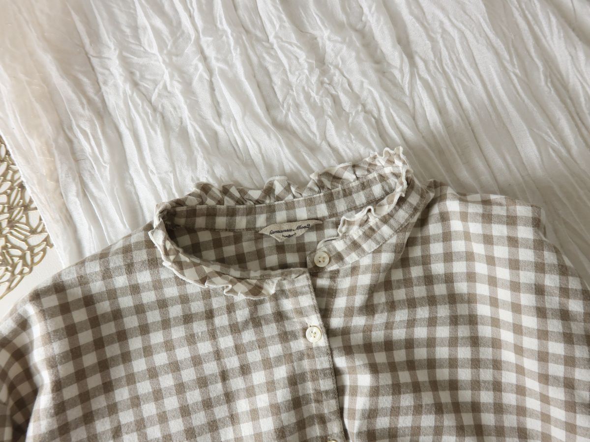 【Warm Material】肌に触れるとほんのり温かくなる、温感加工を施したアイテムです。落ち着きのあるギンガムチェック柄がガーリーなムードを高めてくれるブラウス。襟にはフリルをあしらい、首元まで可愛らしさを演出します。やわらかく手触りの良い生地を使用し、暖かい着心地を実現◎無地のボトムスと合わせてトップスを主役にしたスタイリングがおすすめです。