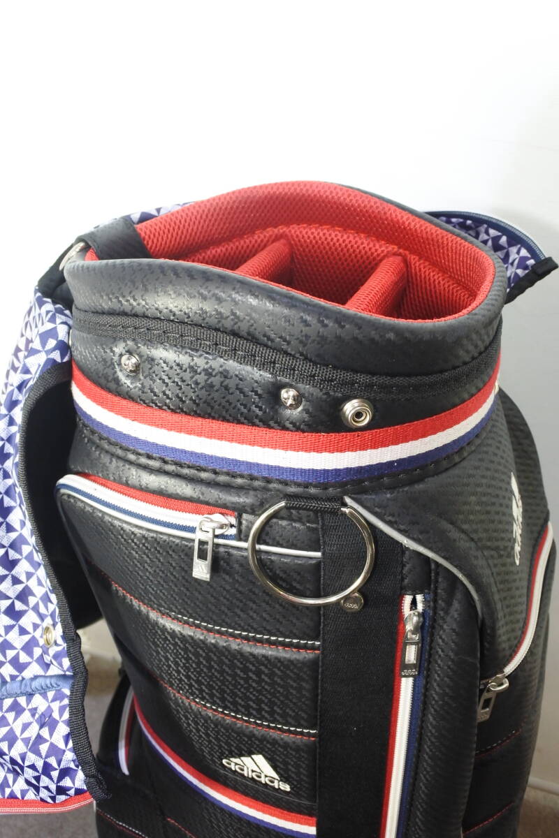 アディダス キャディバッグ 中型 トリコロールカラーデザイン ファスナー作動問題なし 程度普通 重量2.85kg