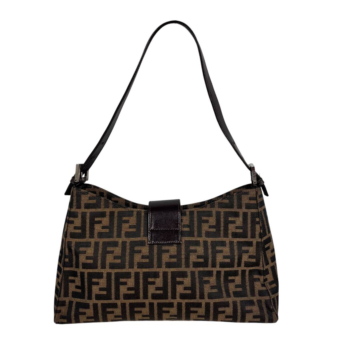 This vintage FENDI Baguette Hobo Bag features the iconic Zucca FF monogram canvas, a true symbol of 90s and early 2000s fashion. The structured yet compact silhouette, paired with a leather flap and silver-tone logo buckle, gives this piece a bold yet refined presence. Crafted for both day and evening wear, it easily transitions from casual to chic. The adjustable shoulder strap adds comfort and practicality, making it a sought-after collector’s item and an enduring fashion statement.