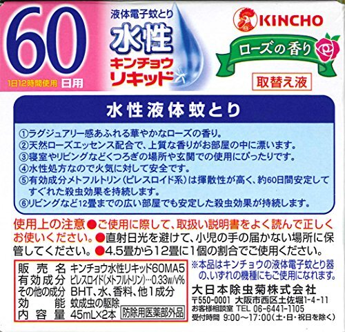 1 水性キンチョウリキッド コード式 蚊取り器 60日 取替液 2本入 ローズの香り(防除用医薬部外品)