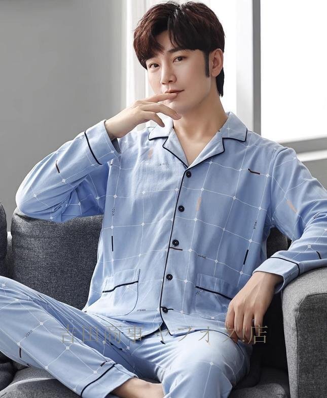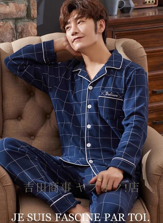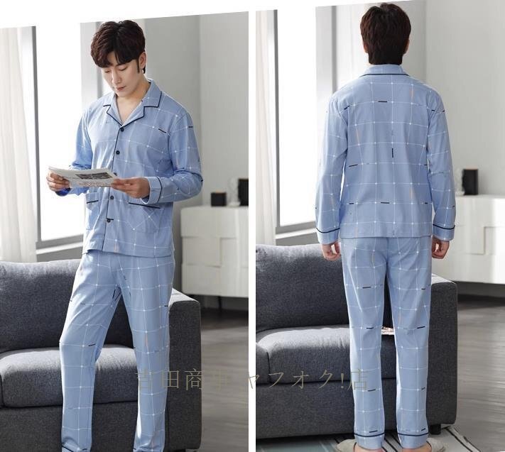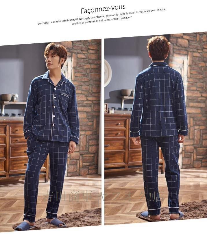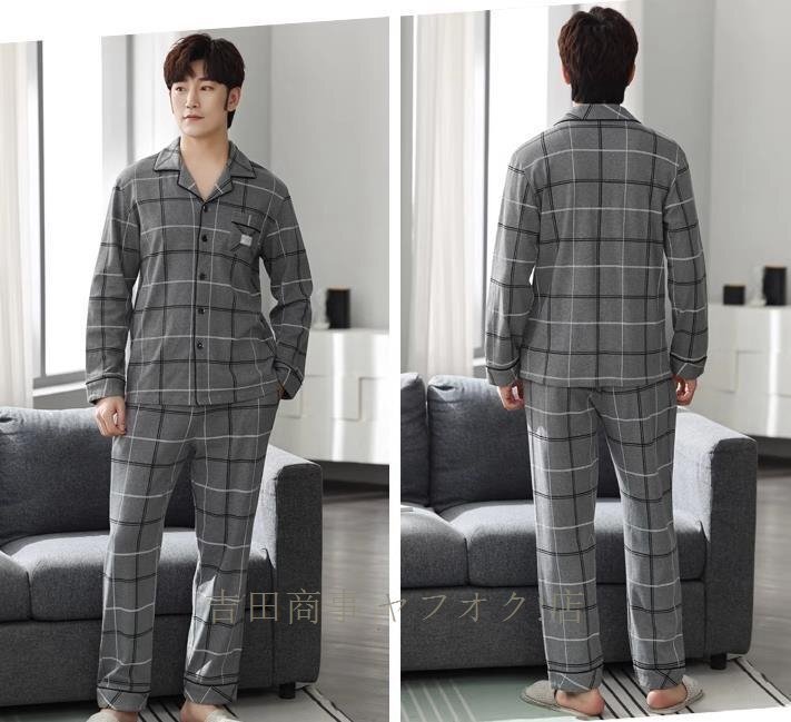 A6450☆新品綿 部屋着 メンズ パジャマ 寝巻き ナイトウェア ルームウェア 長袖 上下セット 前開き 寝間着 チェック柄 お父さんに