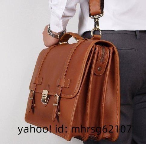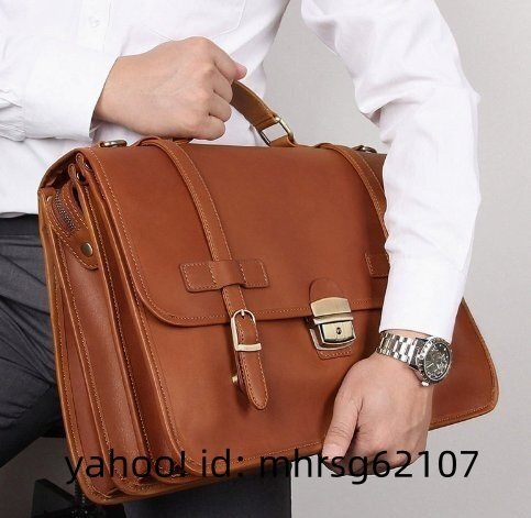 「本革 ビジネスバッグ 男性用手提げ パソコン収納可」