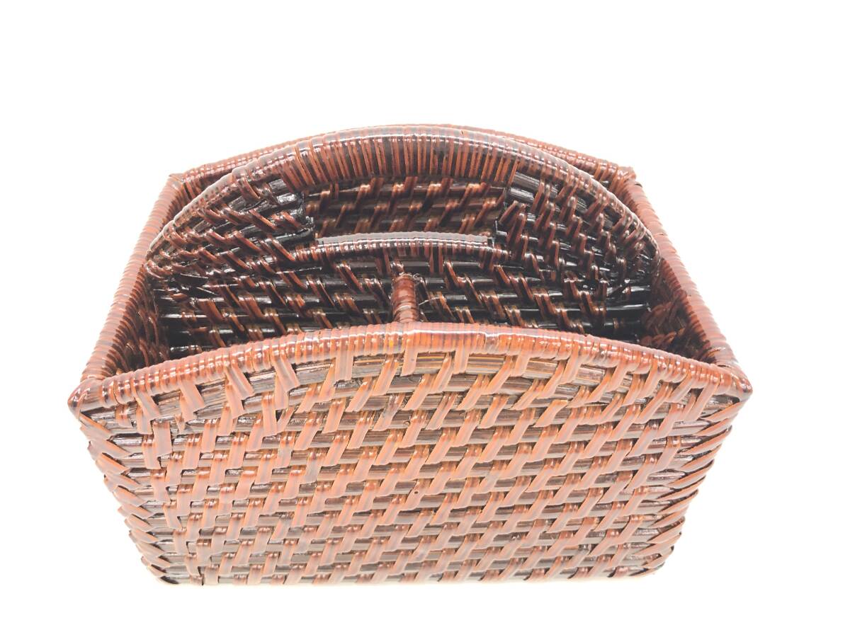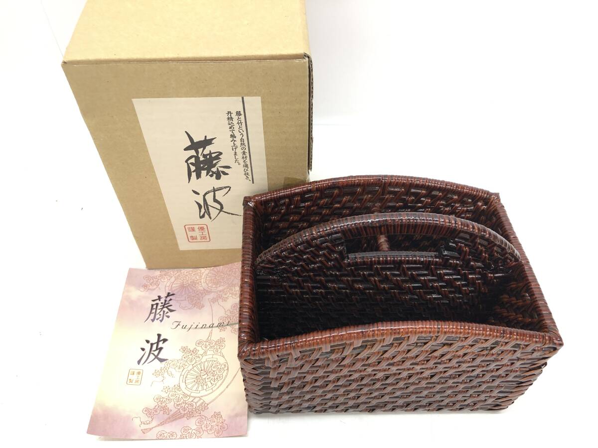 | 未使用 籐波 持ち運び リモコンラック 小物入れ 収納ラック 籐製 竹製 うるし塗装 漆器 和風 インテリア 雑貨 小物 12×18.5×14㎝ 栞/箱付 |