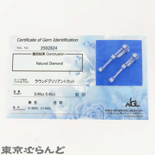 241100061206 ノーブランド no brand ラインイヤリング ホワイトゴールド K18WG K14WG ダイヤモンド 0.40ct 総0.80ct レディース