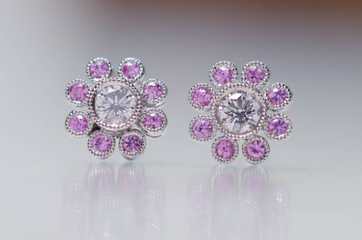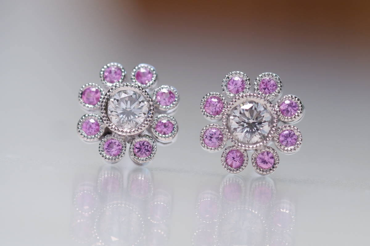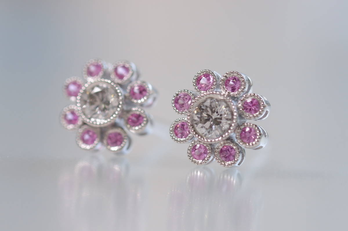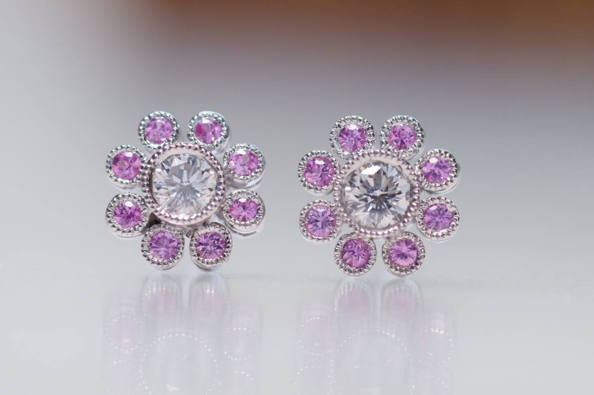 カールブラックバーンのダイヤモンドとピンクサファイアのピアス。