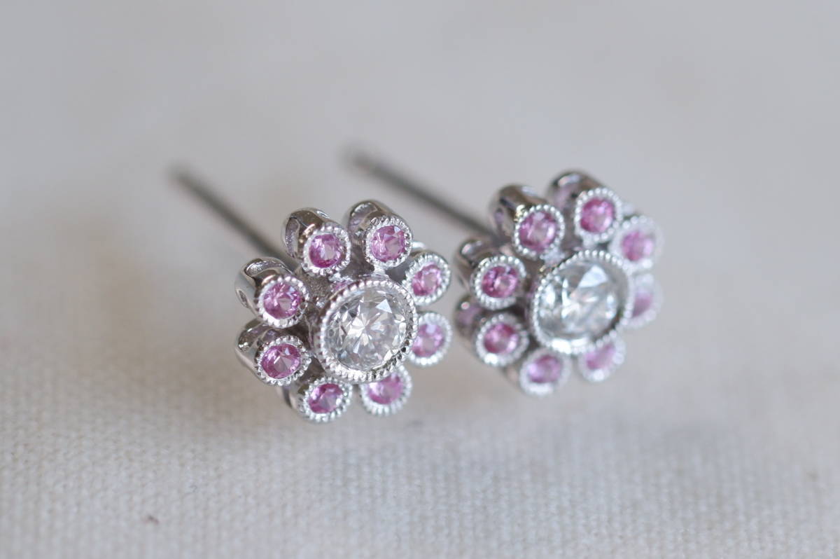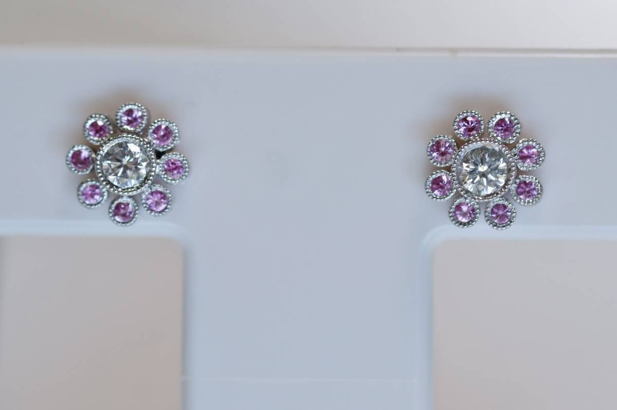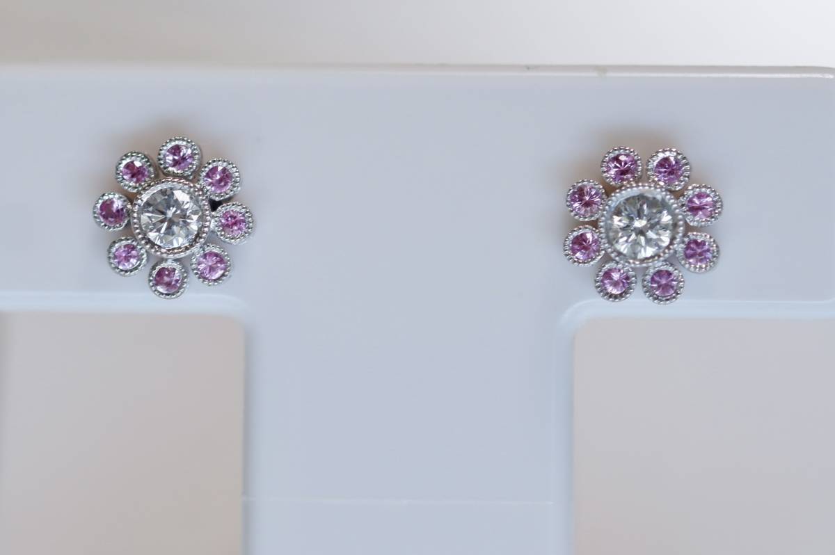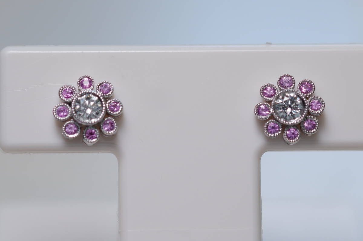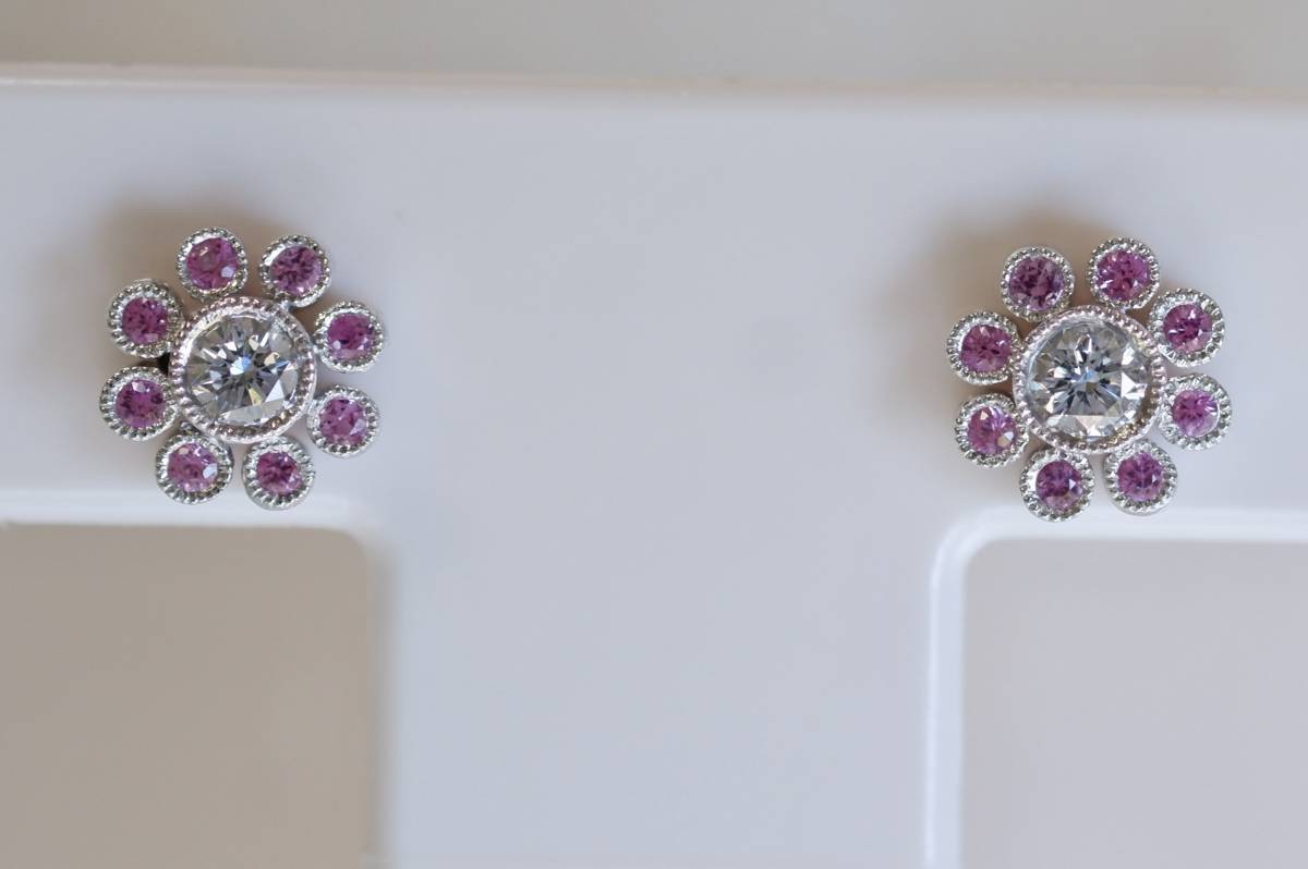 カールブラックバーンのダイヤモンドとピンクサファイアのピアス。