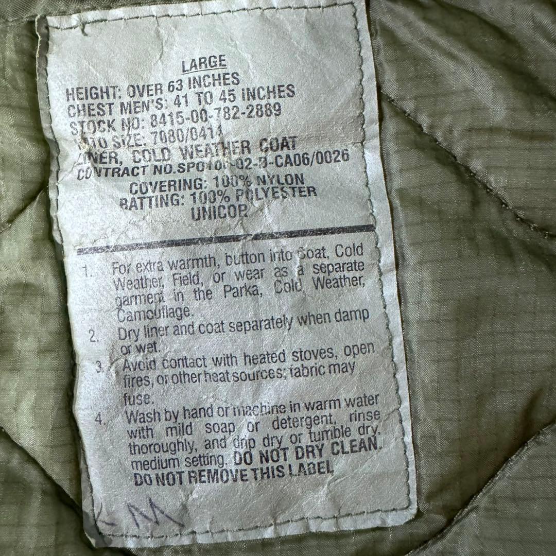 US ARMY 実物 M-65 フィールドジャケット用ライナー。