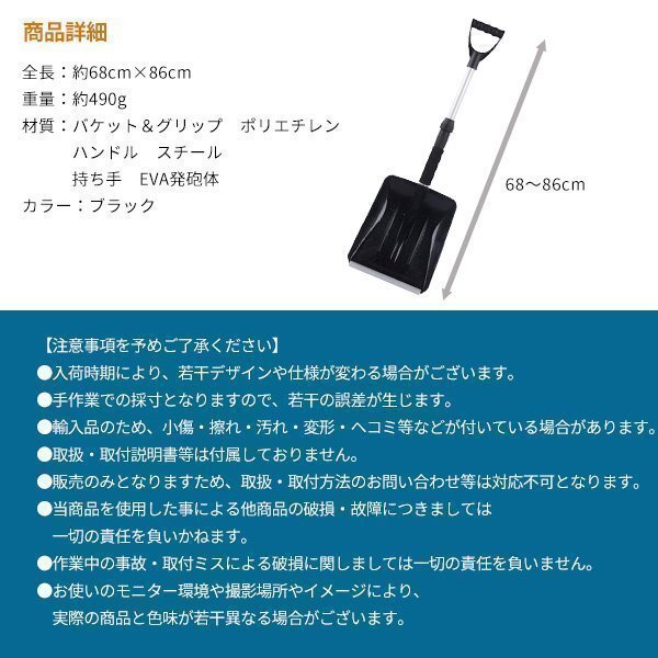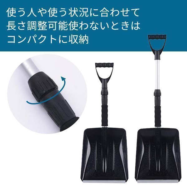 雪かき スコップ シャベル プラスチック スノースコップ スノーシャベル 車載 軽量 450g 伸縮 68~86cm 除雪