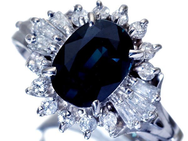 良質なディープブルーカラー煌く良質天然ブルーサファイア1.73ct&ダイヤモンド総計0.46ctを素敵に宝飾した、高級Pt900リングを1円から特別大放出致します!