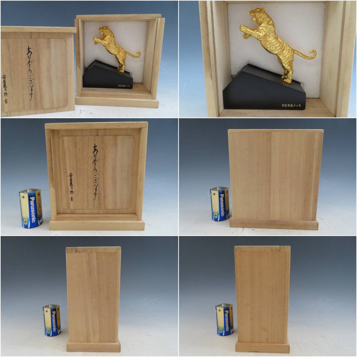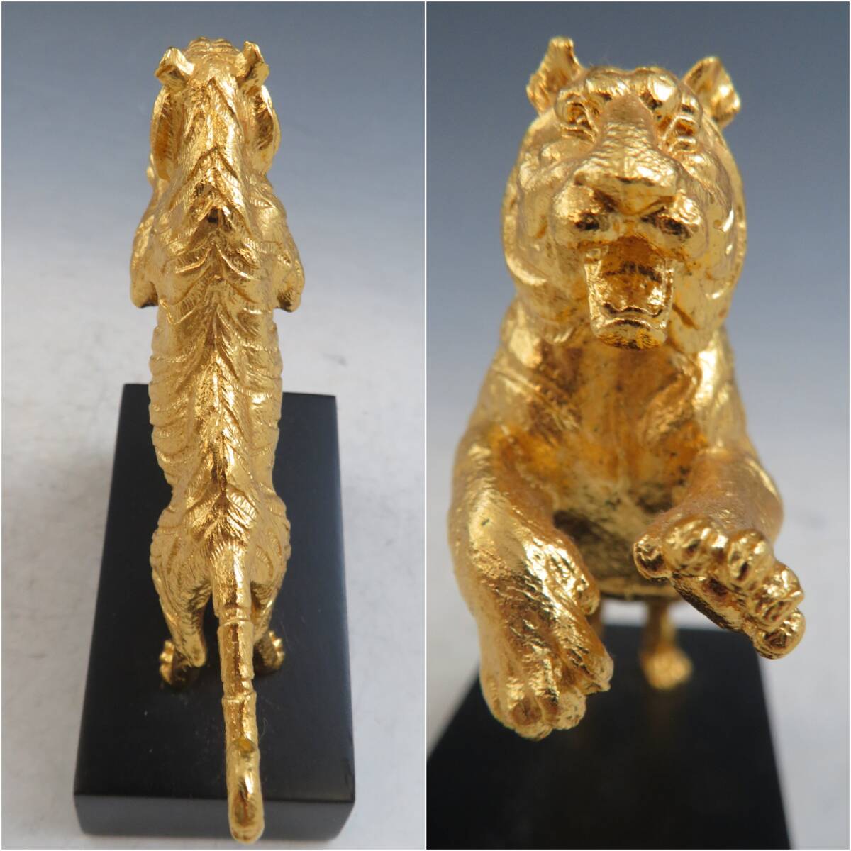 】寅 虎 トラ とら のオブジェ。24K本金メッキです。記念品。オブジェやインテリアに。未使用保管品ですが、長期保管、経年により、キズや劣化、劣化、損傷、キズ、シミ、シミ付き、シミ汚れ、スレ、汚れ、劣化、などあります。劣化があります。長期保管、経年の為に汚れ、キズ、劣化、損傷、埃や汚れ、、ヤケ、汚れ、シミ、欠け、劣化、剥がれ、経年劣化による、埃、擦れ、擦れキズ、経年による劣化損傷難あります。写真の状態でご判断下さい。ご理解頂けない方はご遠慮願います。 ------------------------------ ●【サイズ】 写真参照してください。 単1電池は比較用です。商品には含まれません ●【重さ】400g ※計測は約ですので正確ではありません。(梱包前の体の重さです) ----------------------------- 現状品ですので、ノークレームーリターンでお願い致します。 念入りに検品しておりますが、気づかない破損、欠品等あるかもしれませんので、状態にこだわる方の入札はお控えください。(あくまで中古品ですのでご理解お願い致します) 発送は、土日祝以外、出来るだけ対応いたしておりますが(土曜日も発送出来る場合有り) 定形外はトラブルがあった為、受け付けておりません。紛失や破損の場合、責任を負えませんので、軽い物でも定形外では発送致しませんので、御了承下さい。どうぞご理解お願い致します。 ★割れ物、ガラス製品の場合は保証の無い発送は致しませんのでご了承下さい。 ★悪い評価の多い方は、こちらで入札を削除させて頂きますので、ご了承下さい。 当方は骨董屋をしております。 他にも、色々なジャンルの商品、面白いと思って頂ける商品を出品していきますので、 ジャンルに拘らず、フォローして頂けるとお探しの品が見つかるかもしれません(^_-)-☆ 是非、覗いて観てください! 気に入ったらフォローお願い致します。 お気軽にご質問など御座いました、ご連絡下さい^^ お顔の見えないお取引ですので、気持ちの良いお取引を心がけていきます。 どうぞよろしくお願い致します。 | |||
