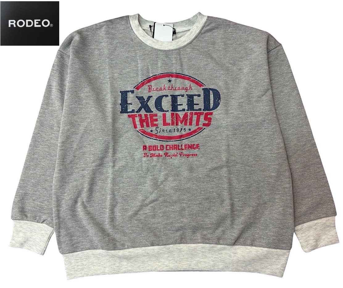 お手頃プライスシリーズ! 新品タグ付 RODEO ロデオ★英字プリント 裏毛トレーナー/gr★140cm ジュニアサイズ&パパママも 11-12才 ¥2090