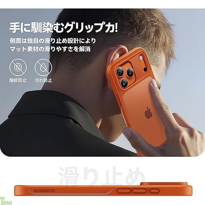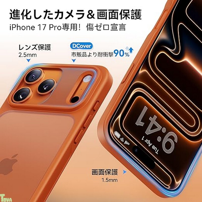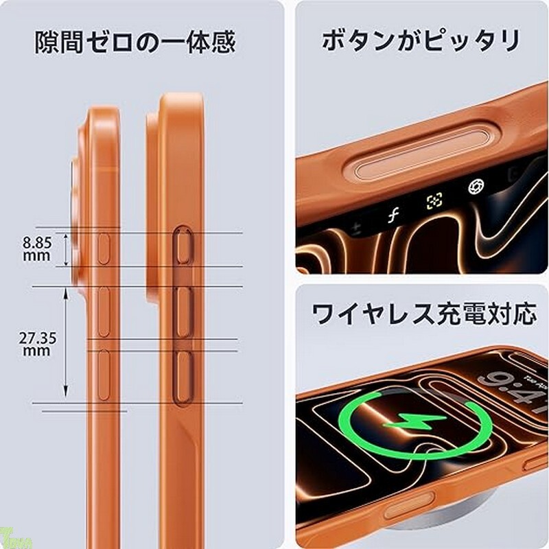 オレンジ 半透明 マット 米軍規格 ワイヤレス充電 ストラップホール 全面保護 アイフォン iPhone 17 Pro 保護 バンパー ケース カバー