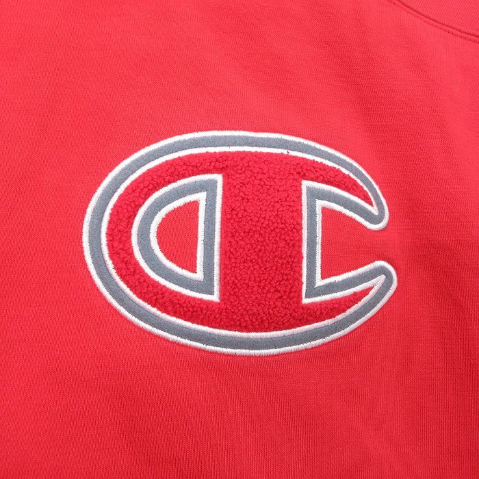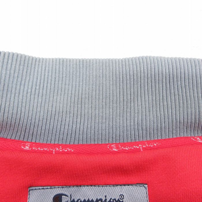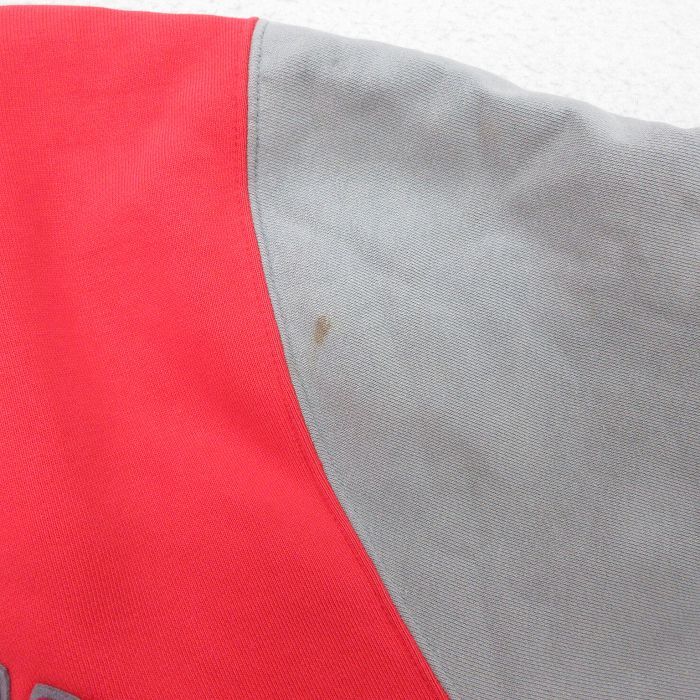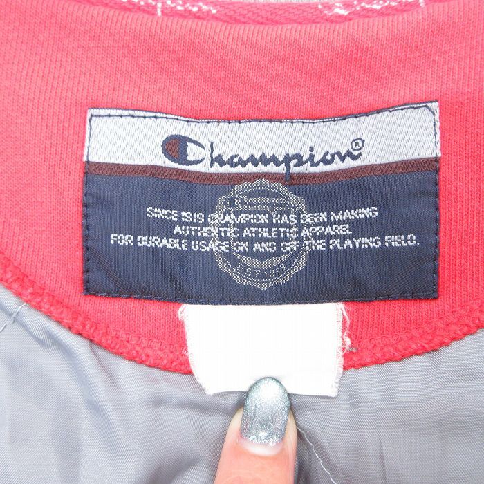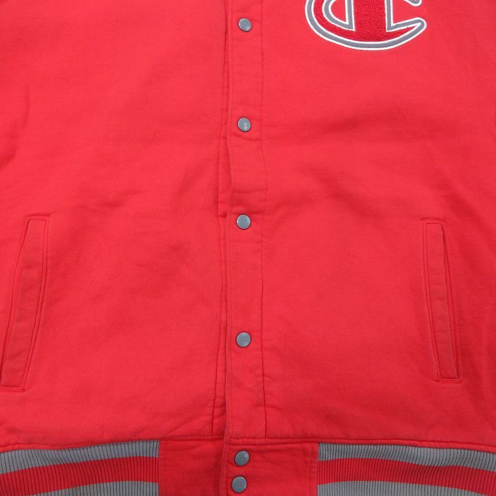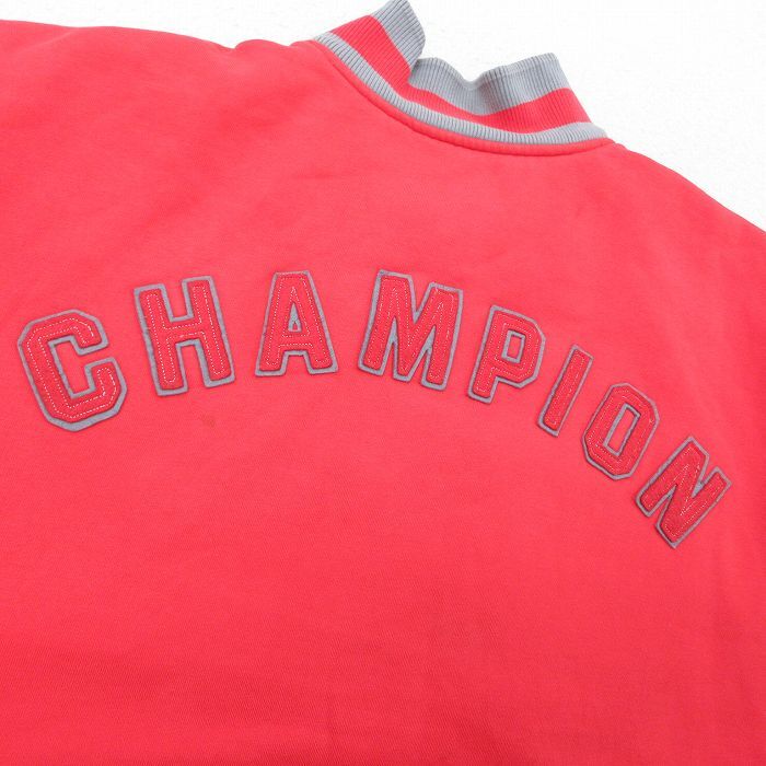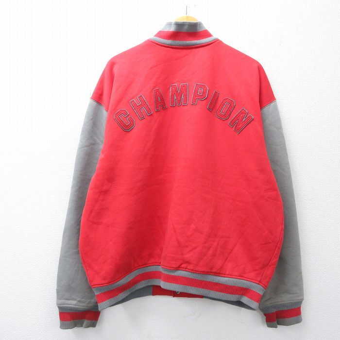 【商品名】 XL★古着 チャンピオン champion 長袖 スウェット ジャケット スタジャン メンズ 00年代 00s ビッグロゴ ツートンカラー 大きいサイズ 赤他 内側キルティング【spe】