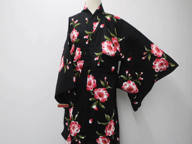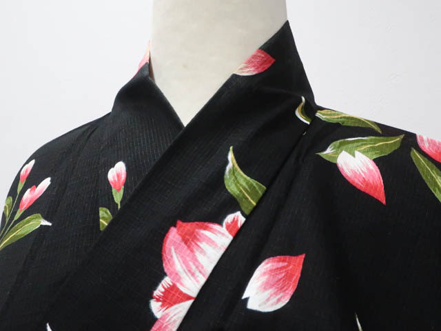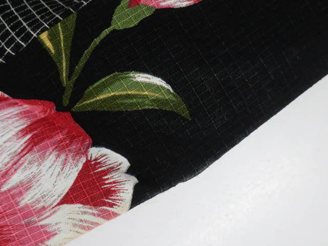 リサイクル商品のため、衿と衿裏に汚れがございのす。 上前など所々に薄い白い汚れがございますが着用可能なお品です。 地色は黒です。 1枚目の画像が近いお色かと思われます。 素材は綿です。 |