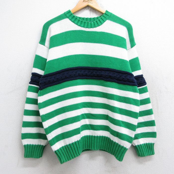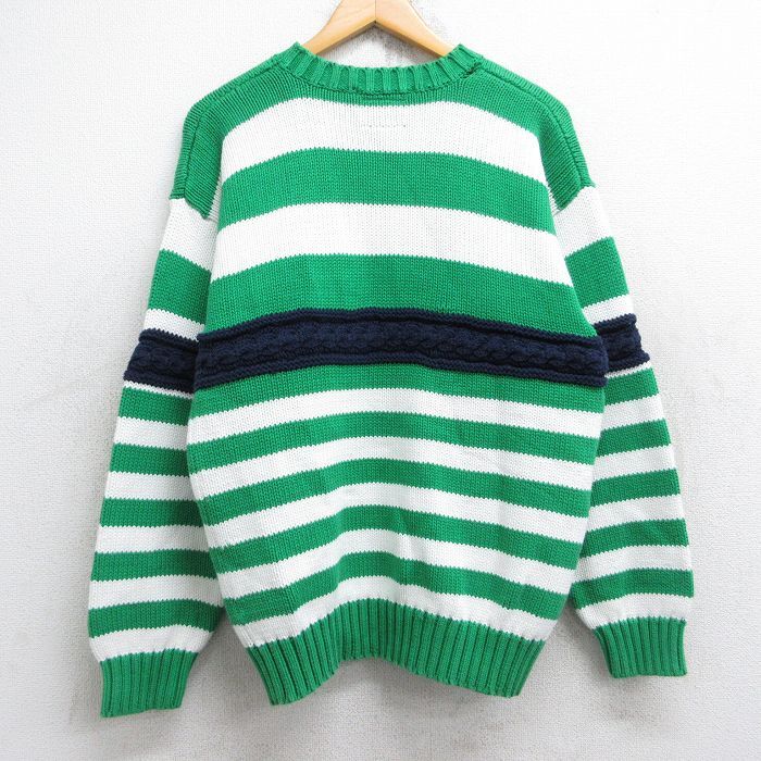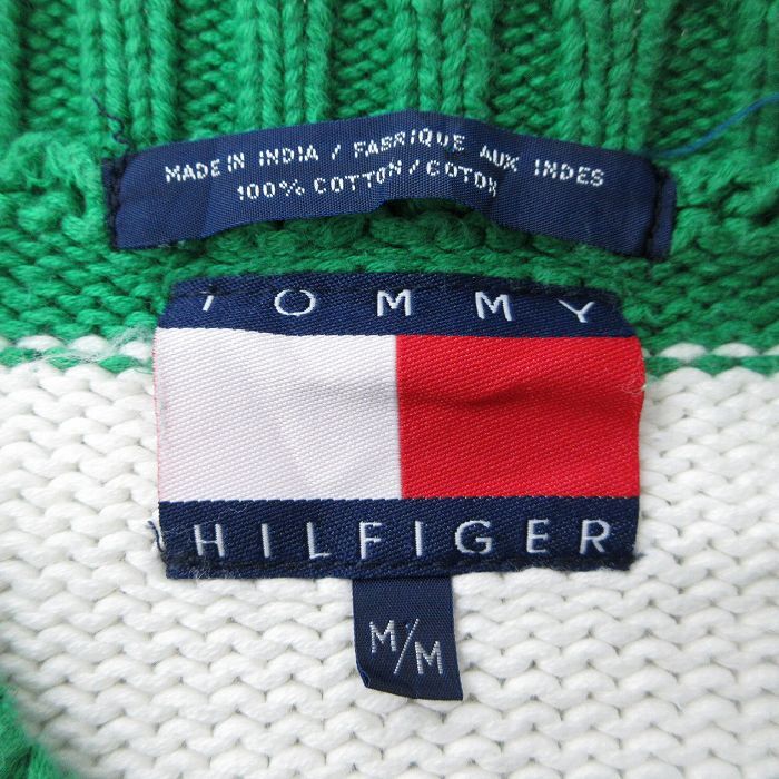 【商品名】 M★古着 トミーヒルフィガー 長袖 ブランド セーター メンズ 90年代 90s コットン クルーネック 緑他 ボーダー【spe】