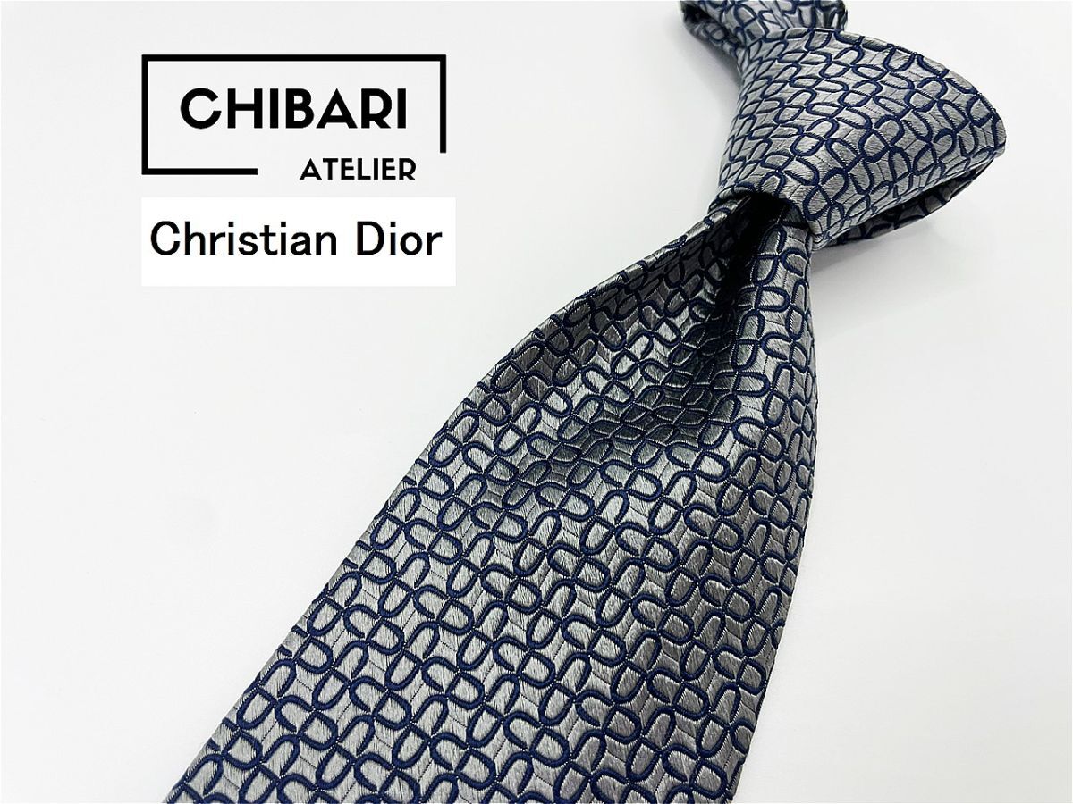 【新古品】ChristianDior ディオール 全面CDロゴ柄 ネクタイ 3本以上 送料無料 メンズ グレイネイビー 光沢 0901161