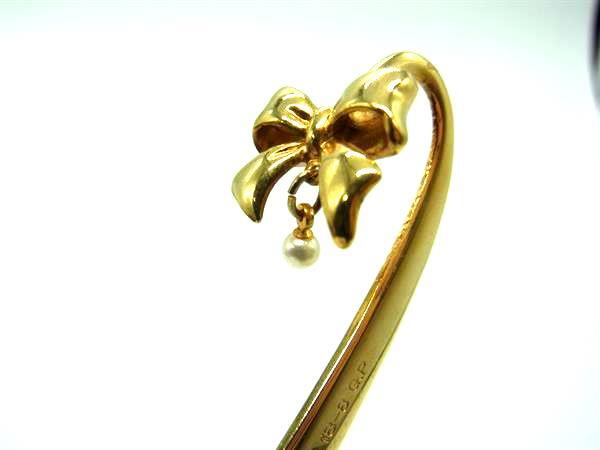 TASAKI タサキ 本真珠 アコヤ真珠 パール 約3mm リボンモチーフ ブックマーカー しおり 栞 ゴールド系 DY0551