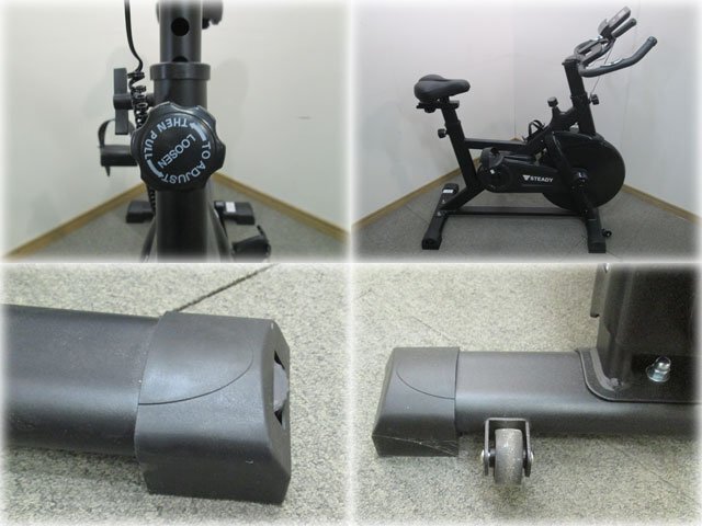 STEADY スピンバイク を出品いたします。 ■特徴■ 成長を見据えた有酸素運動デビューに 暮らしに寄り添うスピンバイク 図書館レベルの静音性 時間を気にせず 自宅でトレーニングしたい方に 有酸素と同時に体幹強化 有酸素運動で効率的に スタイルアップしたい方に ホイールカバー付き 子供やペットがいても安心 家族全員で使いたい方に STEADY独自のSmoothy Rim キャスター付きで楽々移動 ヒップが痛くならないから集中できる 高クッションのサドルで快適 ■仕様■