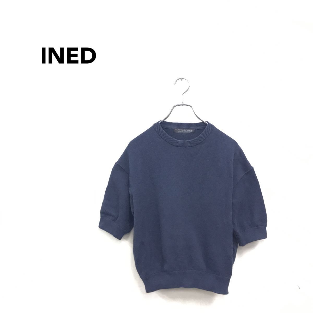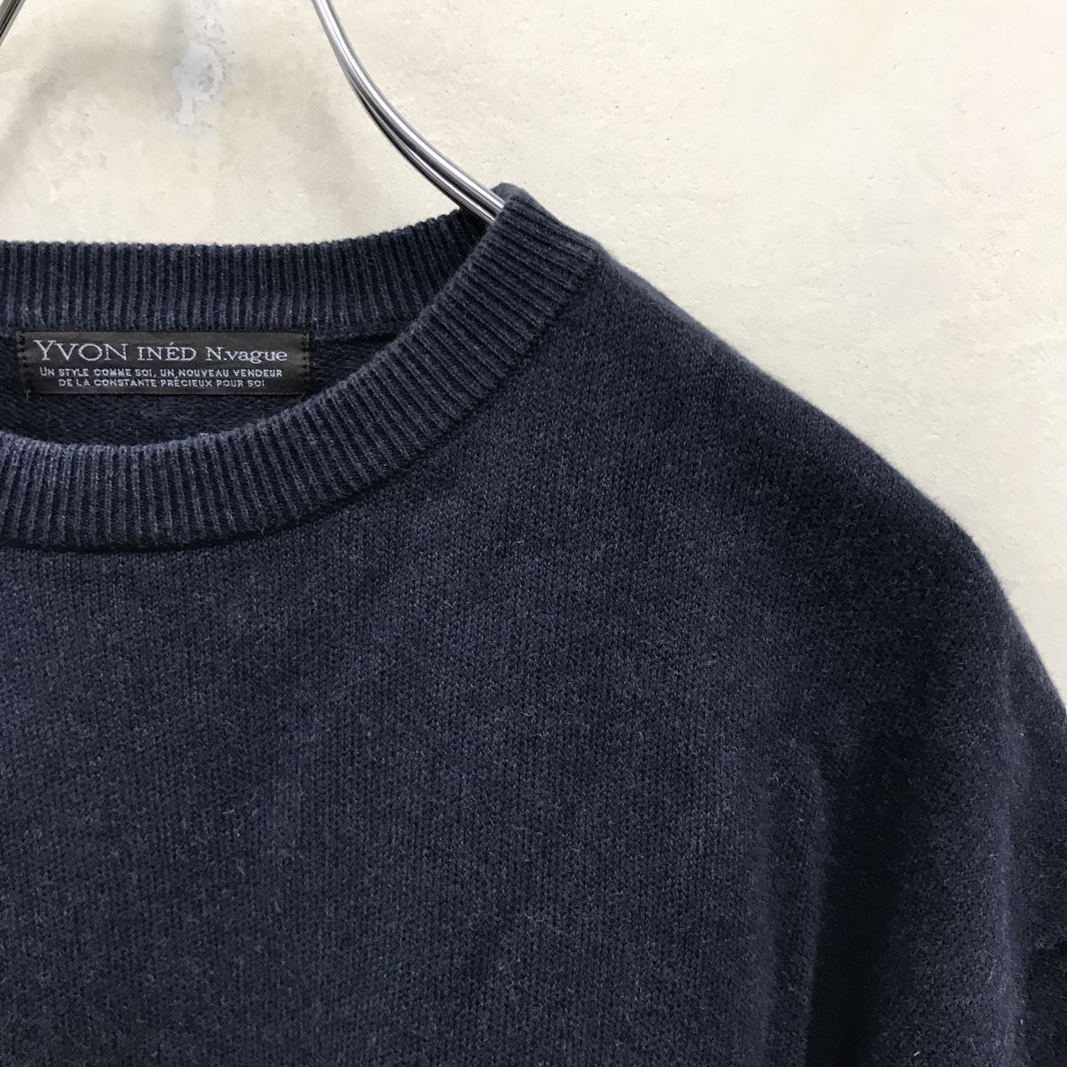 2O1362-U◆YVON INED N.vague イヴォン イネド ヌーヴェルヴァーグ コットン半袖ニットセーター オーバーサイズ 丸襟◆size9 紺 ネイビー