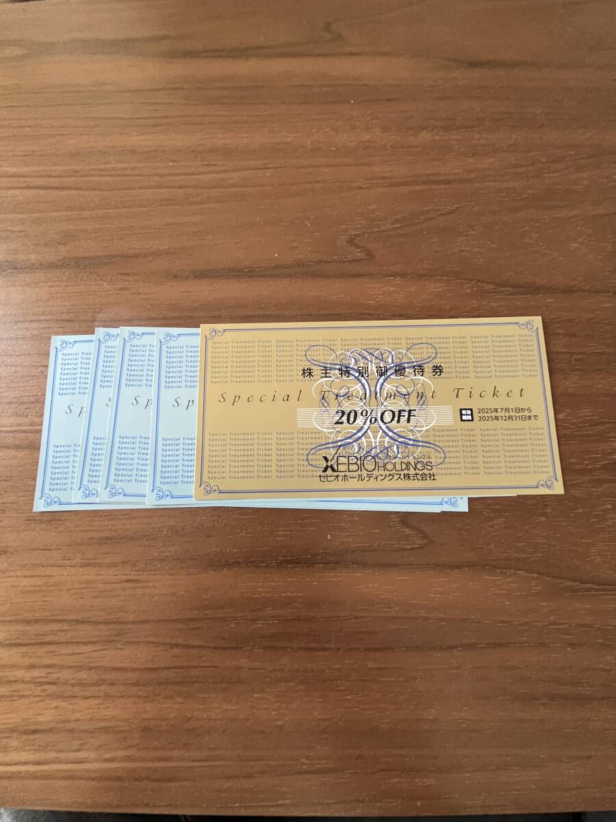 ゼビオ株主優待20%引き1枚と10%引き4枚の値段です。有効期限2025年12月31日までです。