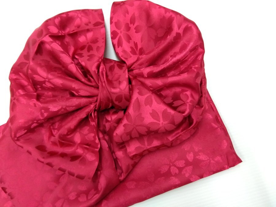 キッズ帯 兵児帯 へこおび 化繊 ナイロン 紅無地 小花地紋あり 263