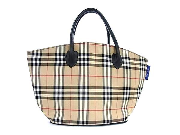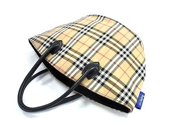 1円 ■美品■ BURBERRY バーバリーブルーレーベル ノバチェック キャンバス×レザー ハンドバッグ トートバッグ ベージュ系 FP7393