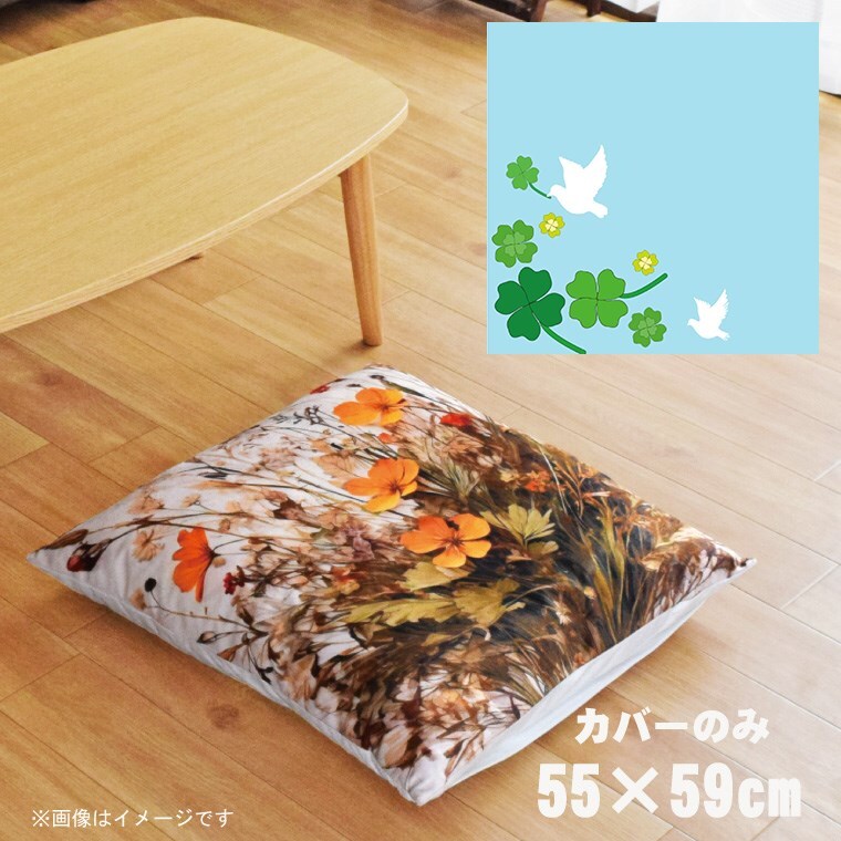 座布団 カバー 55×59cm カバーのみ 単品 北欧 洗える おしゃれ ファスナー付 リビング 転写プリント CSC-B063 クローバー&鳩