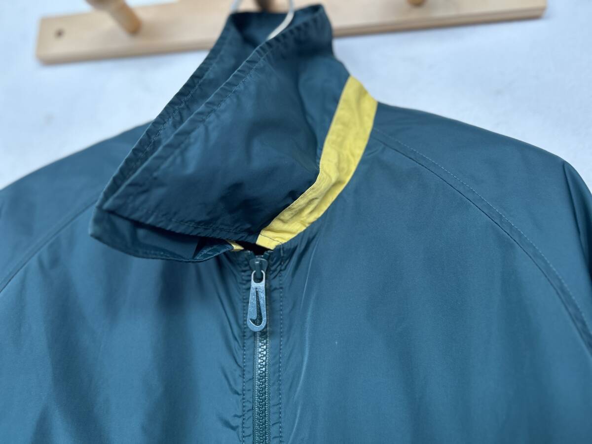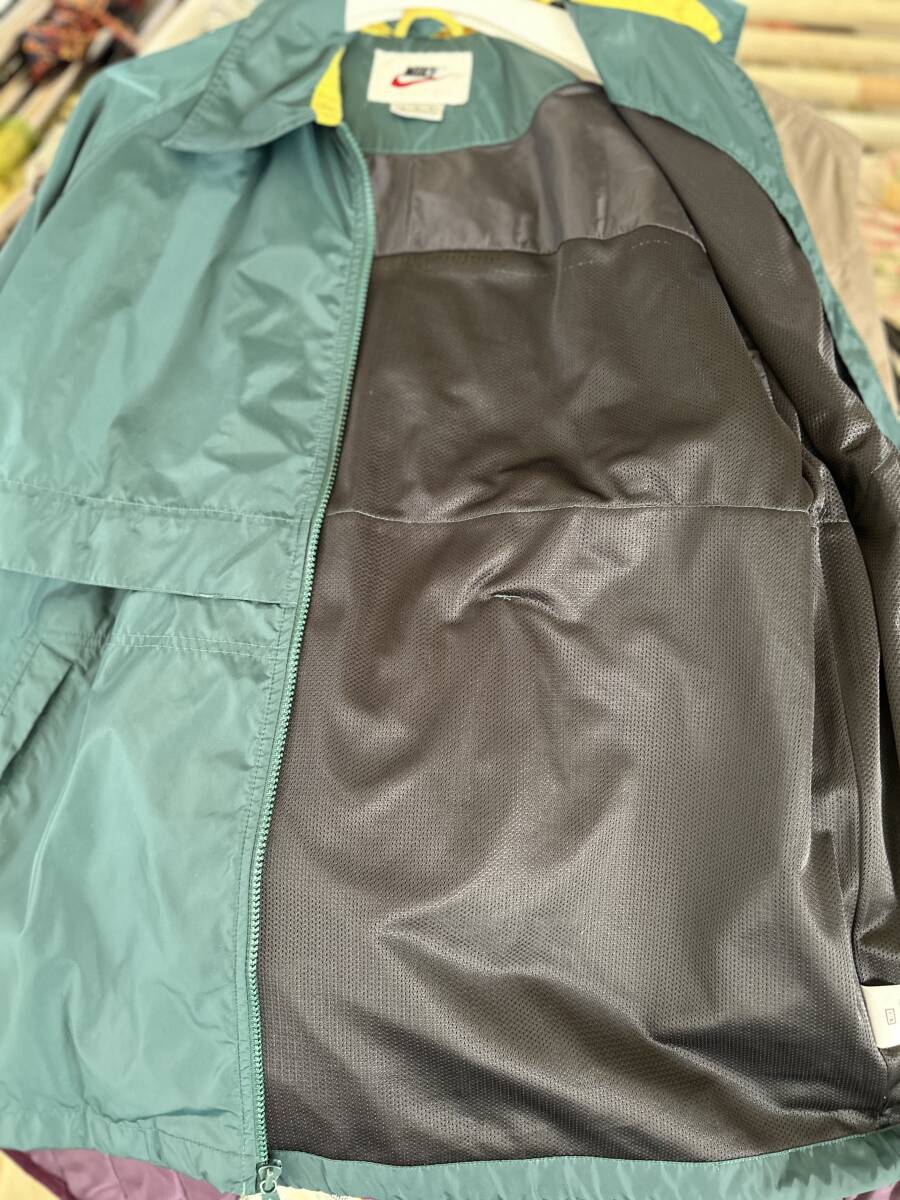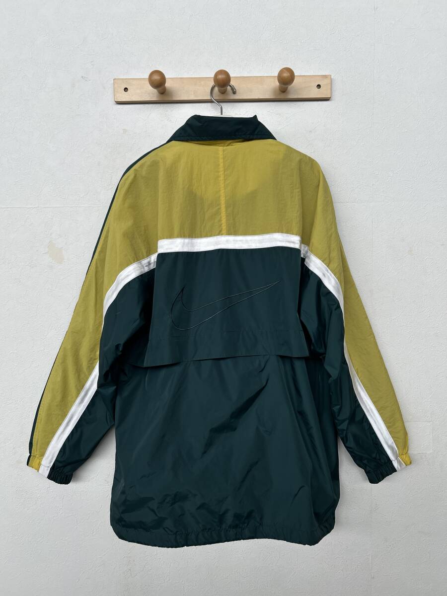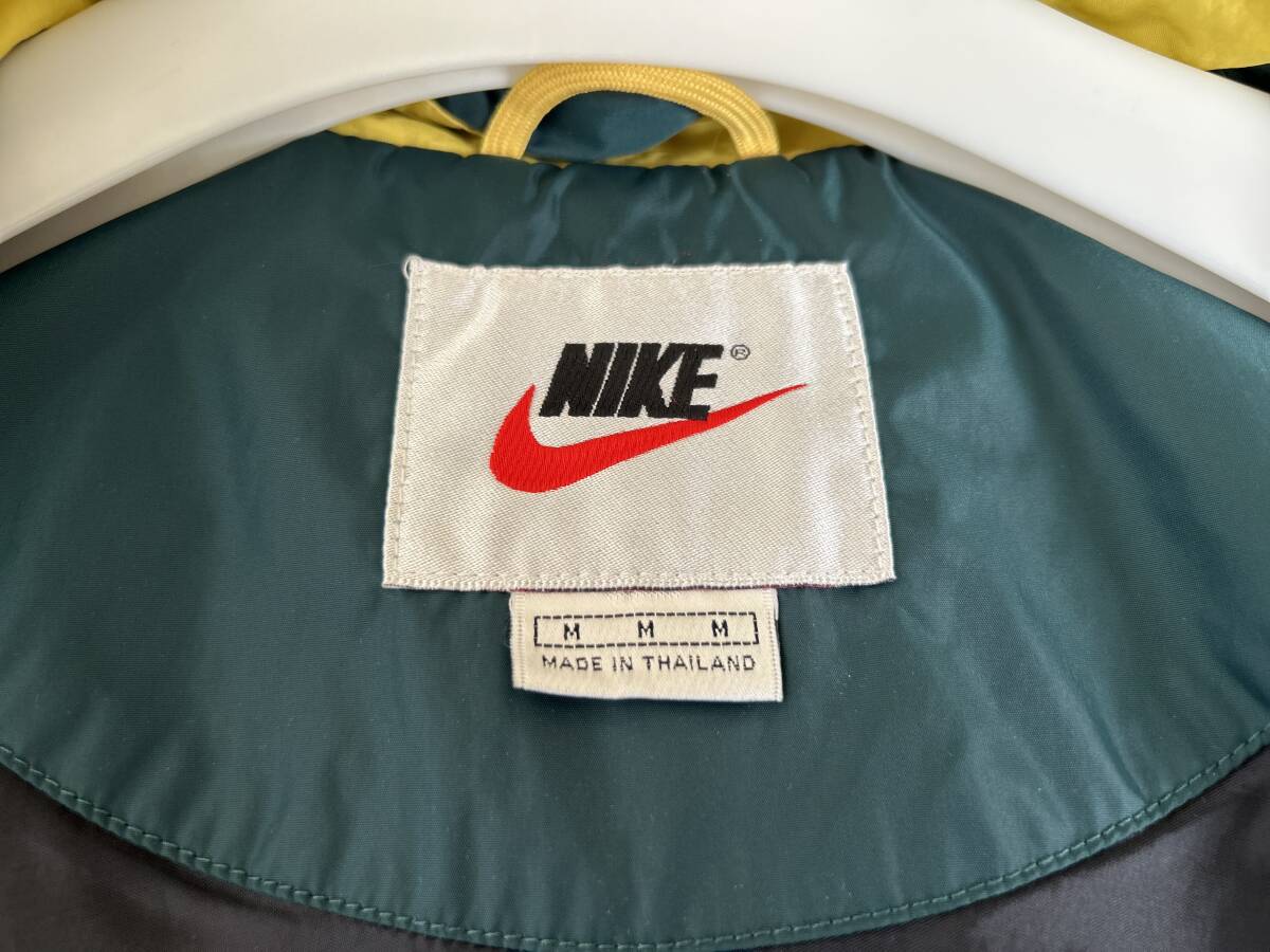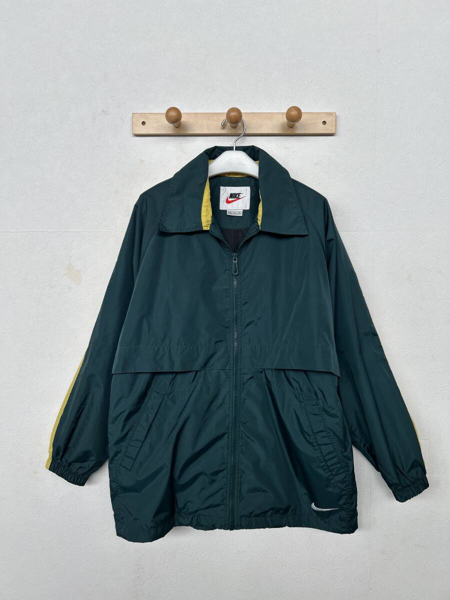 90s NIKE ナイキ 白タグ メンズ オーバーサイズ ナイロンフルジップジャケット ロゴ刺繍入り 美品(ほぼ未着用) size M BEJ0609