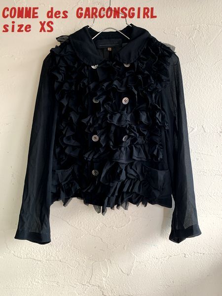 ◆O06◆COMME des GARCONS GIRL コムデギャルソンガール フリルデザイン シフォン素材ブラウス  ブラック サイズXS