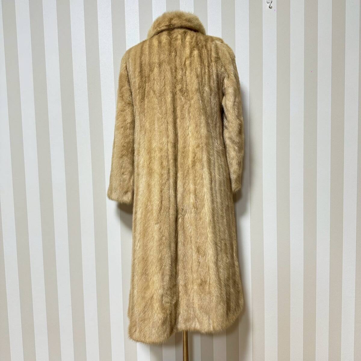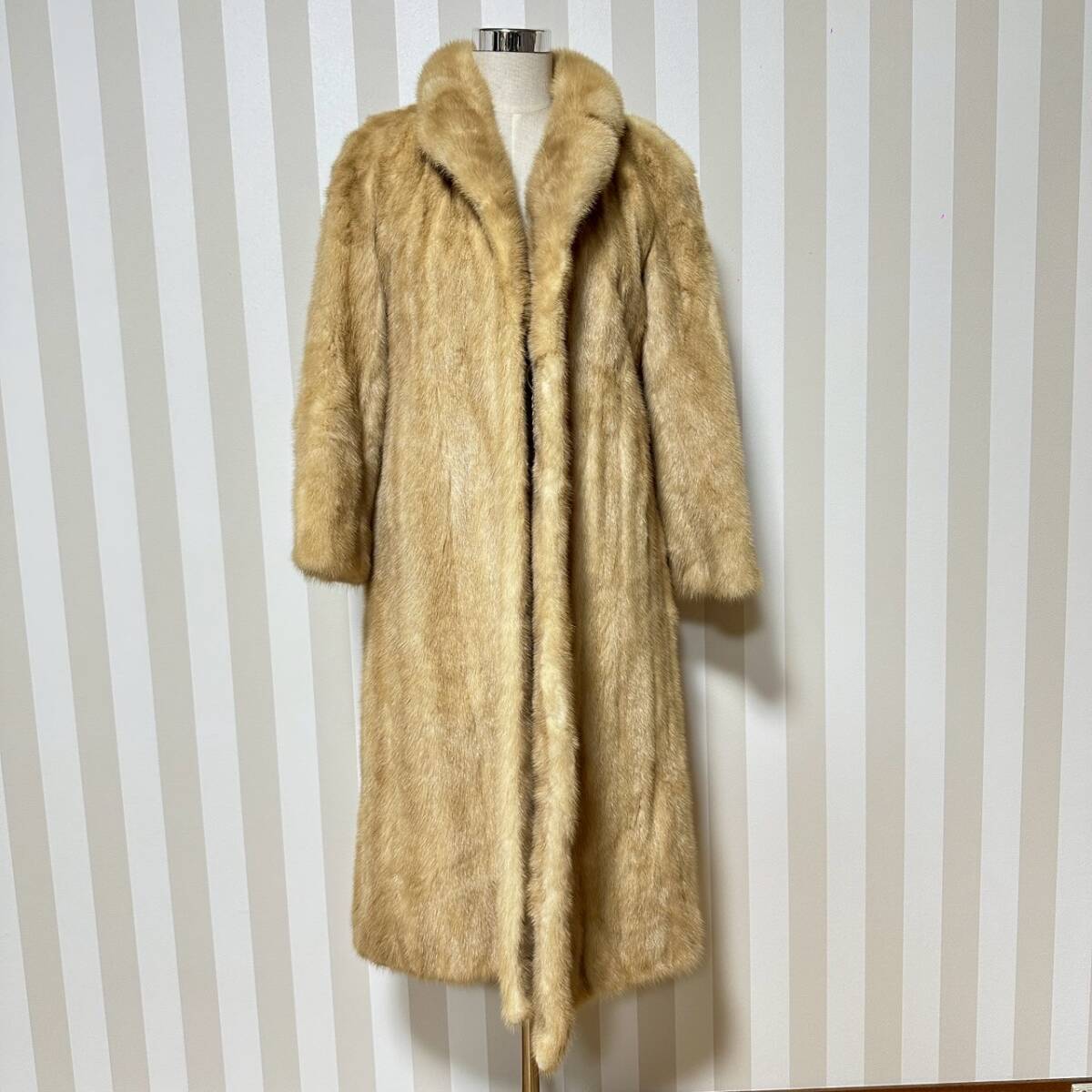 商品:★1円〜【レディース毛皮】 ミンク MINK 毛皮 本毛皮 高級 ファー ロングコート アウター ベージュ ネームあり 着丈約120cm K101242
