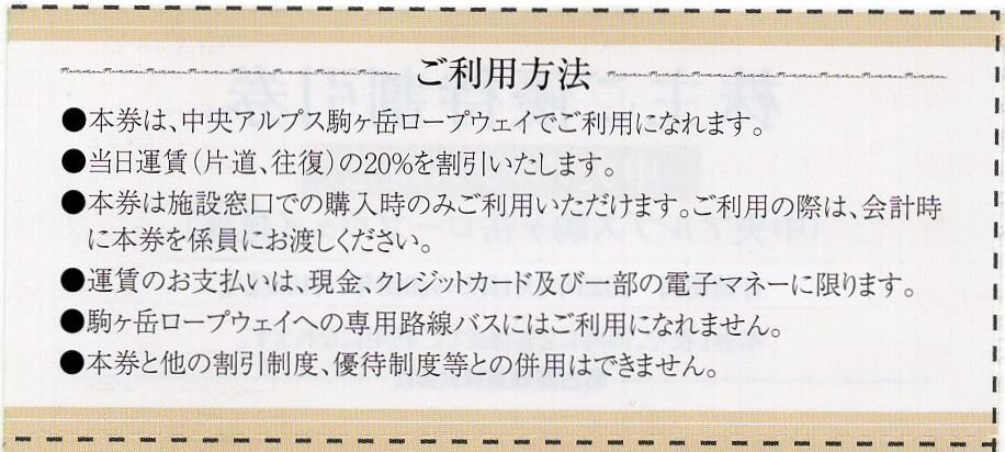 ■.中央アルプス 駒ヶ岳ロープウェイ 片道/往復運賃20%割引券 1枚で2名様まで割引適用 ロープウエイ 1-10枚 2026/7/15期限 名鉄