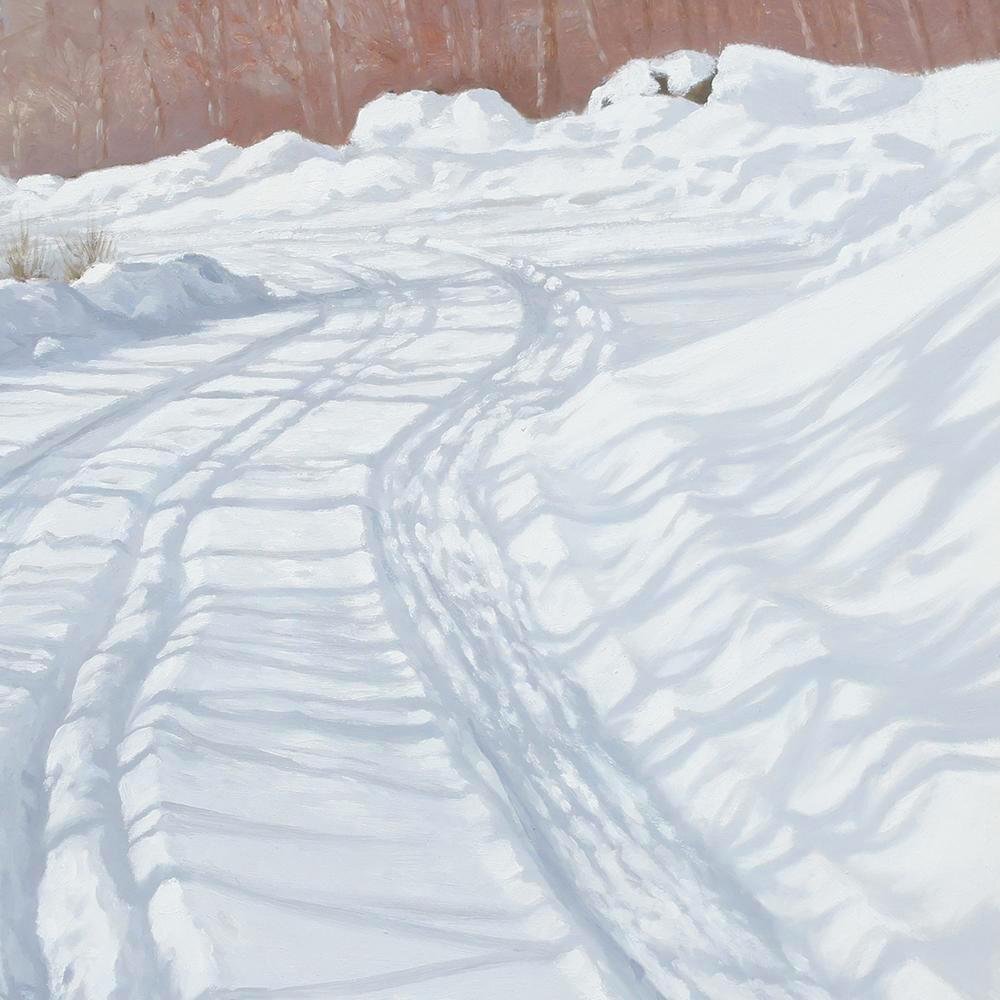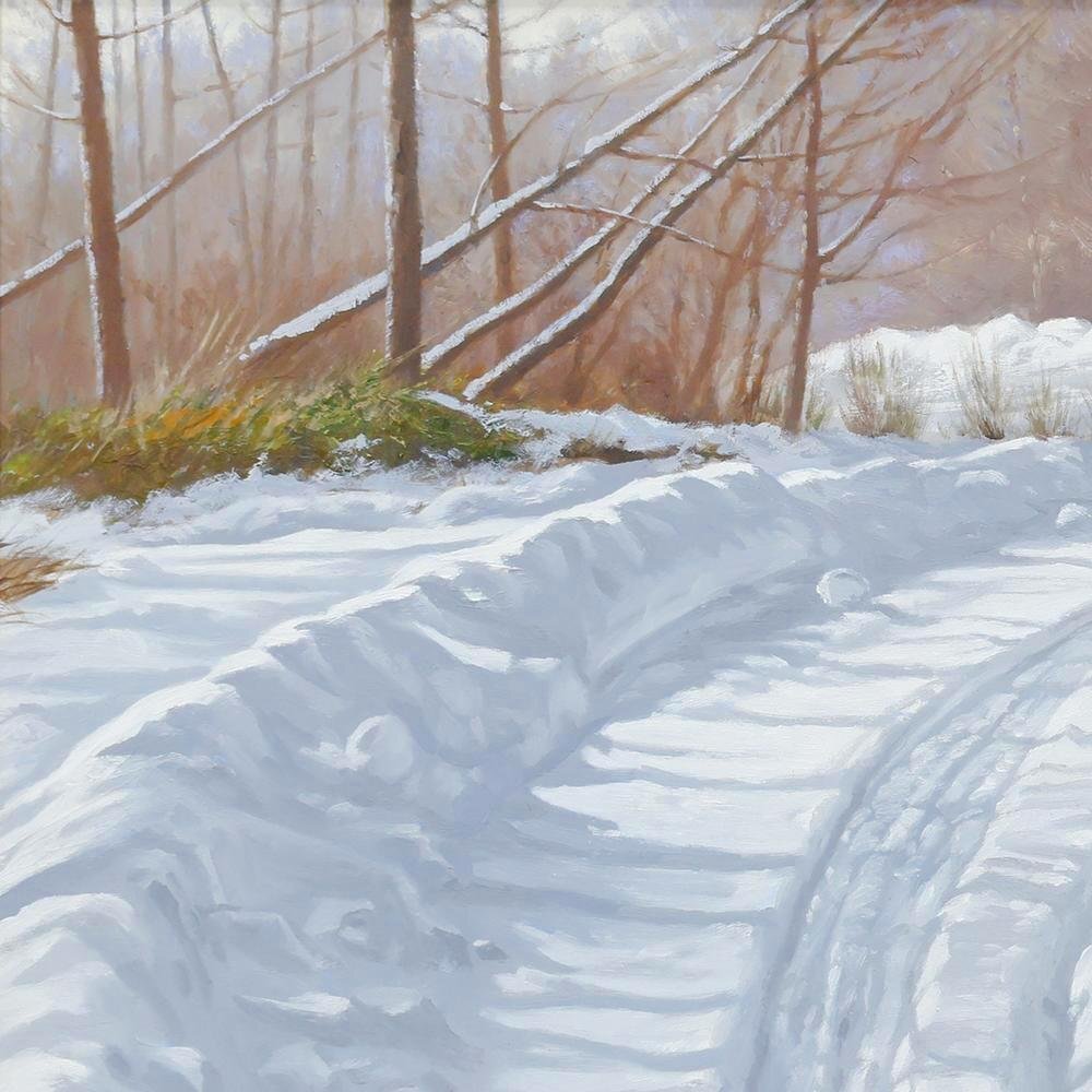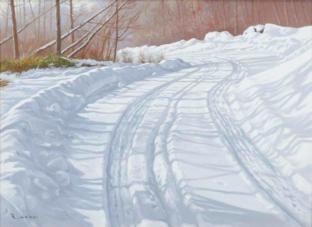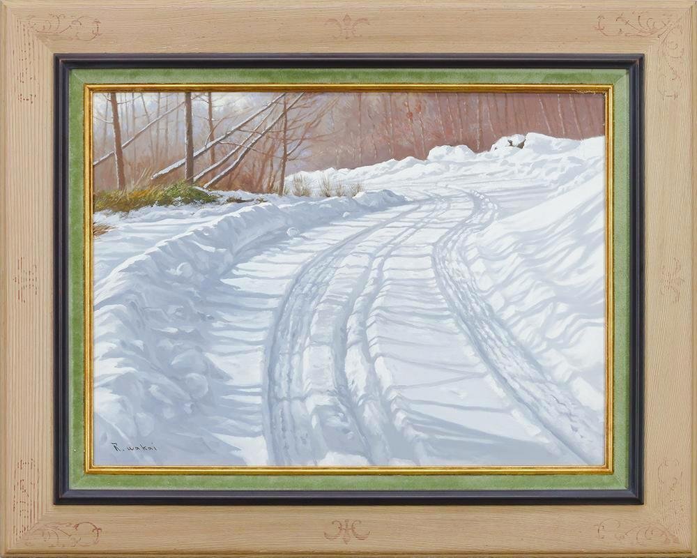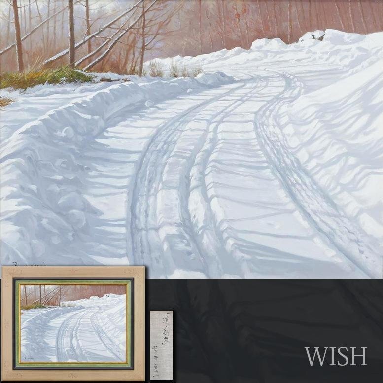 【真作】【WISH】若井良一「道・新雪」油彩 8号 ◆冬の陽光が映す、雪道の軌跡   〇リアリズム人気画家 文部大臣奨励賞 #25092794