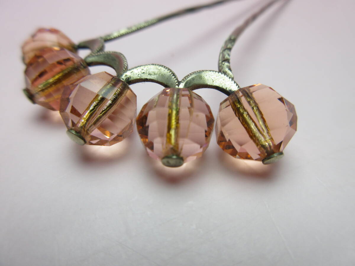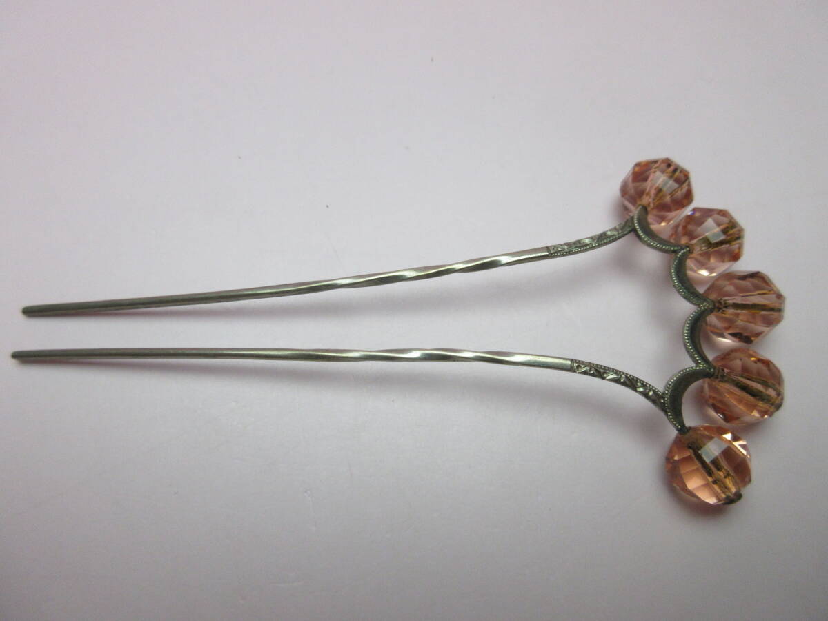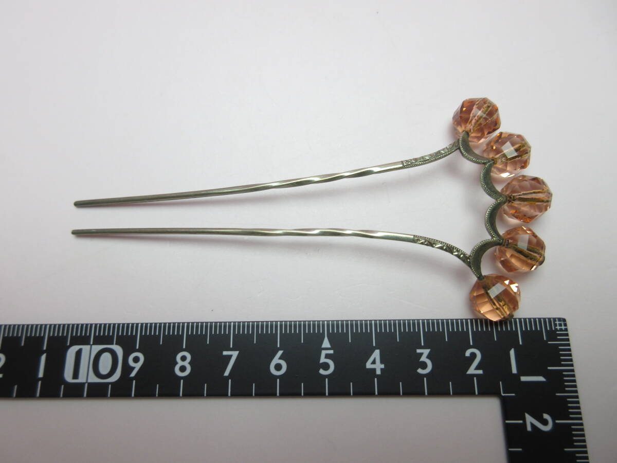 CA135 ♪♪ ガラス玉 彫金 二股簪 ♪♪ アクセサリー レトロ ビンテージ