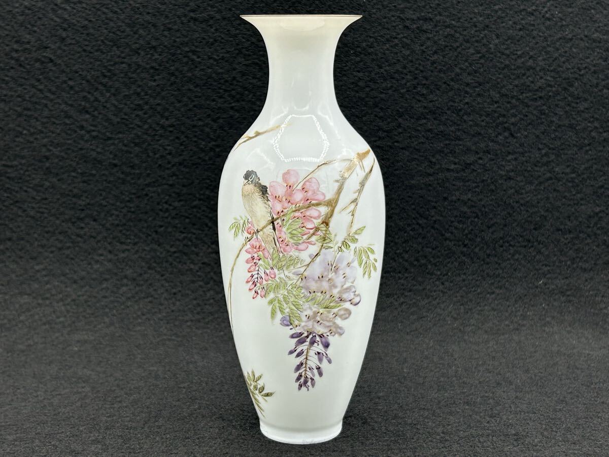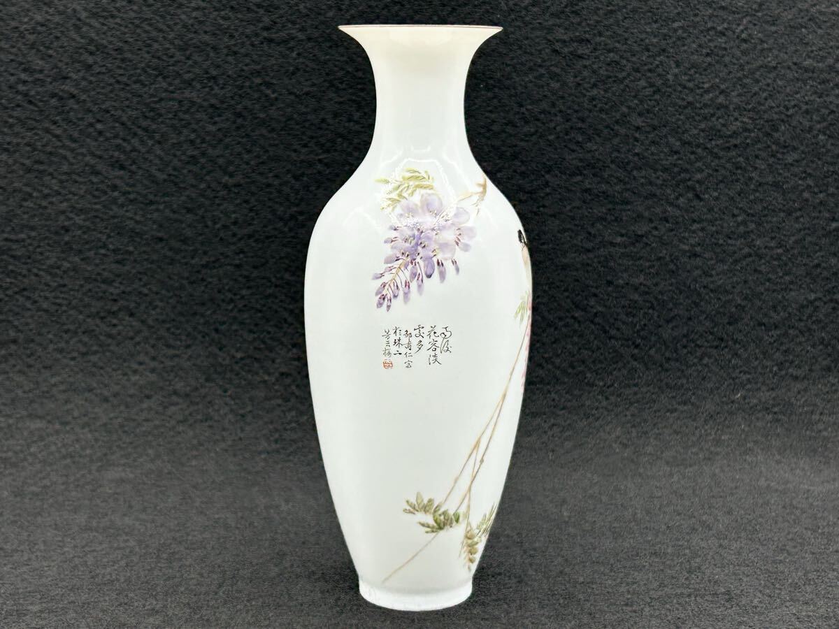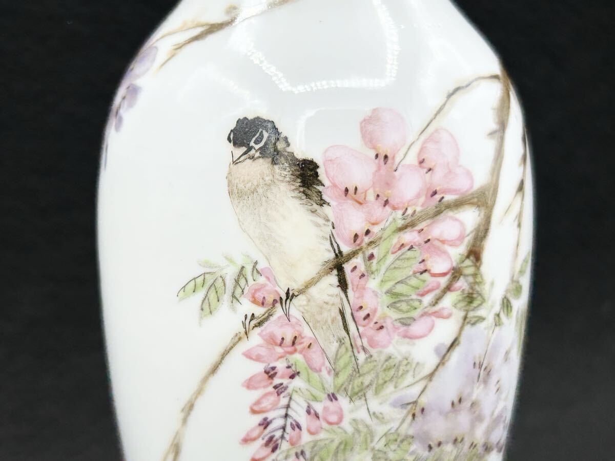 景徳鎮製/鄒甫仁/粉彩薄胎花瓶/花鳥画/色絵磁器/梅瓶/花瓶/高さ約20.5cm/箱付/一点です。