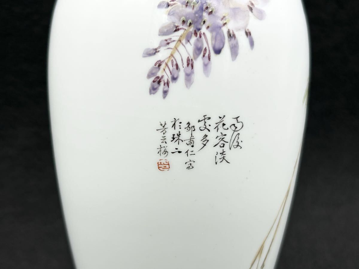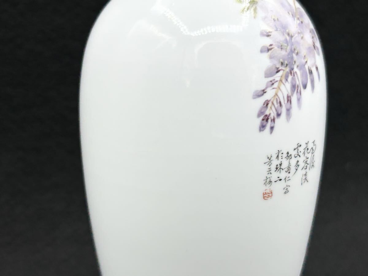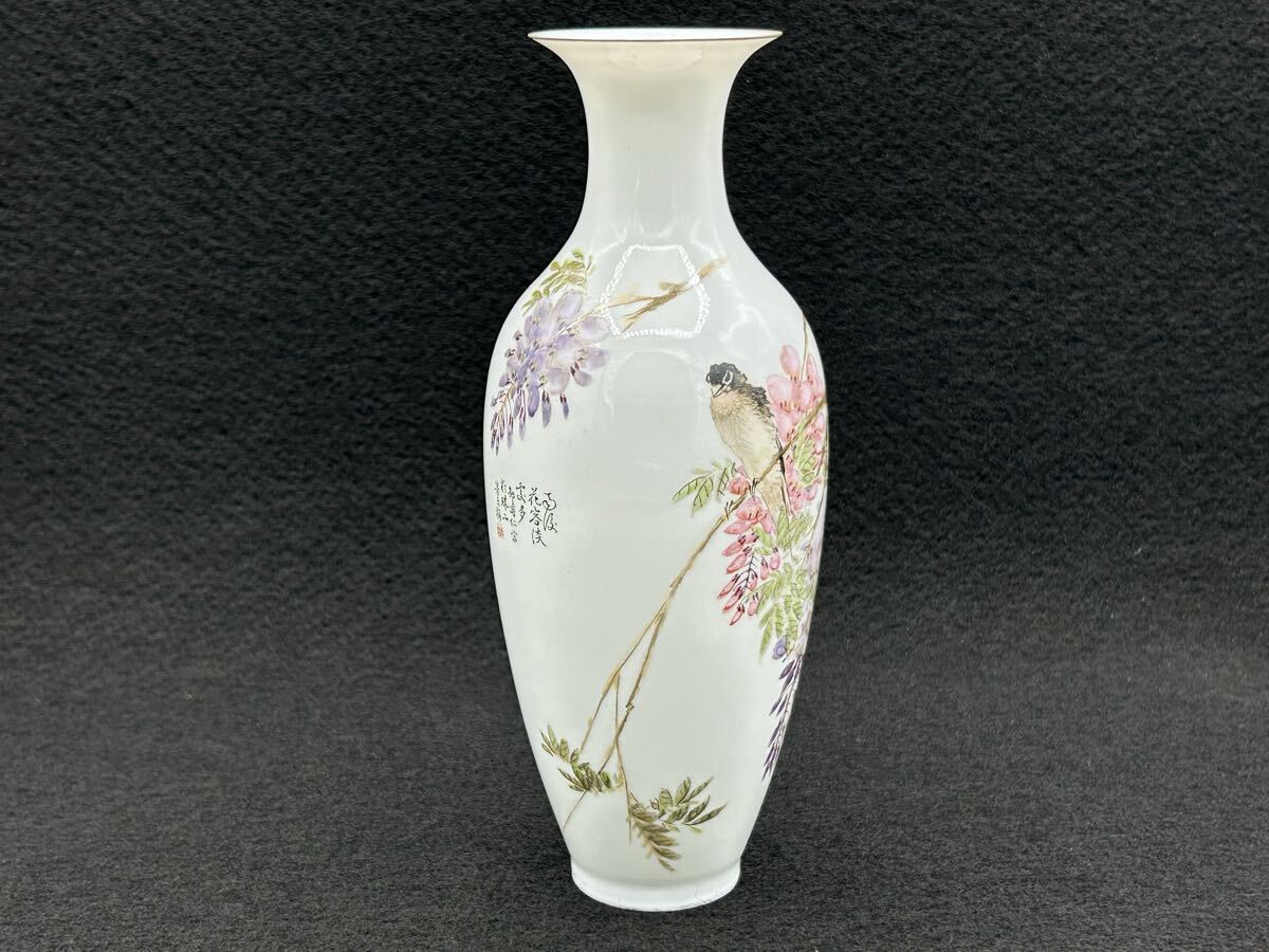景徳鎮製/鄒甫仁/粉彩薄胎花瓶/花鳥画/色絵磁器/梅瓶/花瓶/高さ約20.5cm/箱付/一点です。