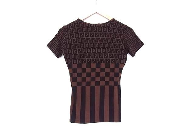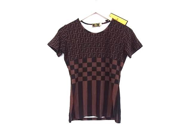 1円 ■新品同様■ FENDI フェンディ ズッカ柄 ペカン柄 レーヨン×ポリウレタン Tシャツ トップス サイズ 44 洋服 ブラウン系 FQ2388