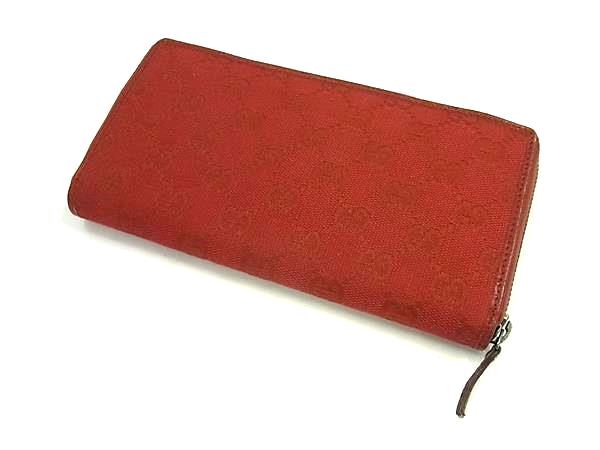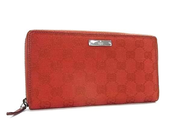 1円 ■美品■ GUCCI グッチ 112724 3731 GG柄 GGキャンバス×レザー ラウンドファスナー 長財布 ウォレット 小銭入れ レッド系 FV2342