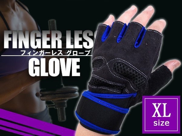 フィンガーレスグローブ ウエイトトレーニング 指なし トレーニンググローブ XLサイズ ブルー 青 ジム ウェイトトレーニング 指だし 手袋