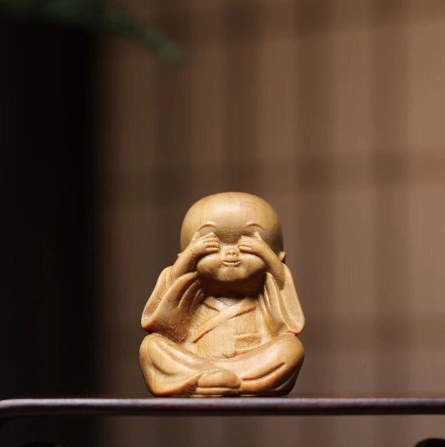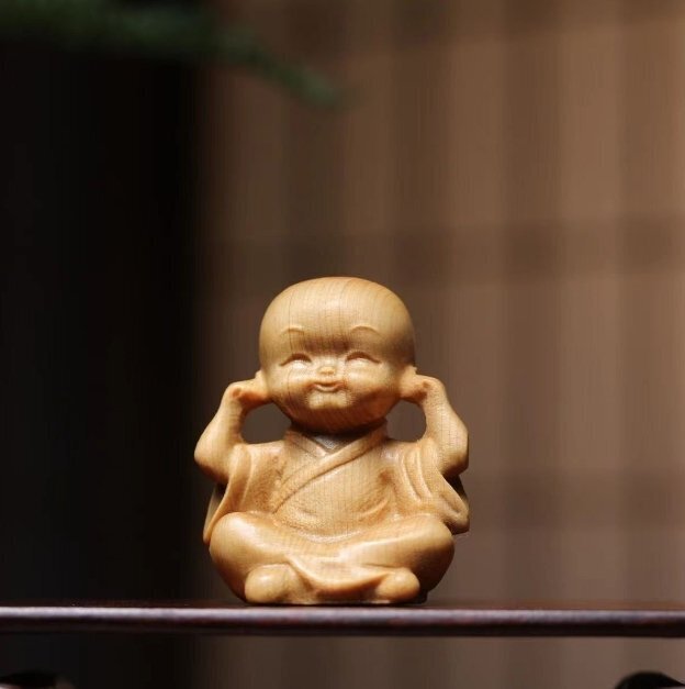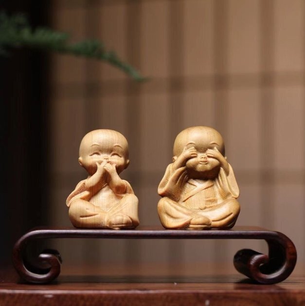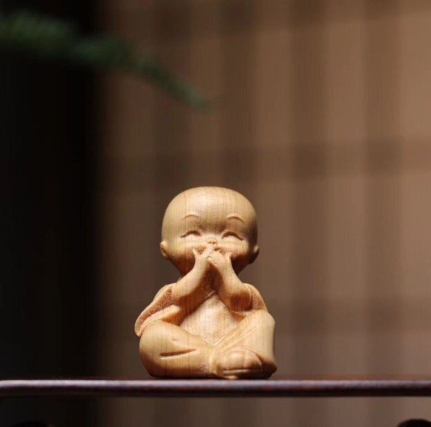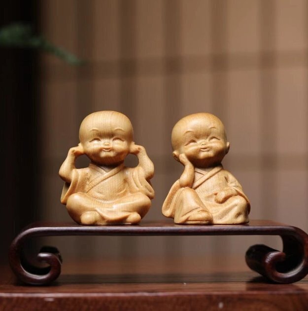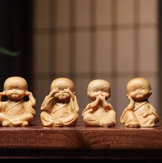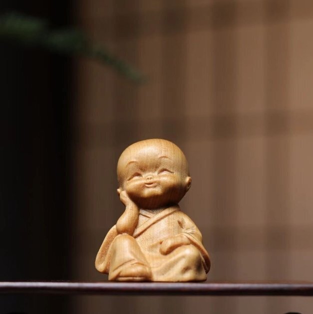 人気新品★崖柏木彫り立ち小坊主4枚 禅の置物